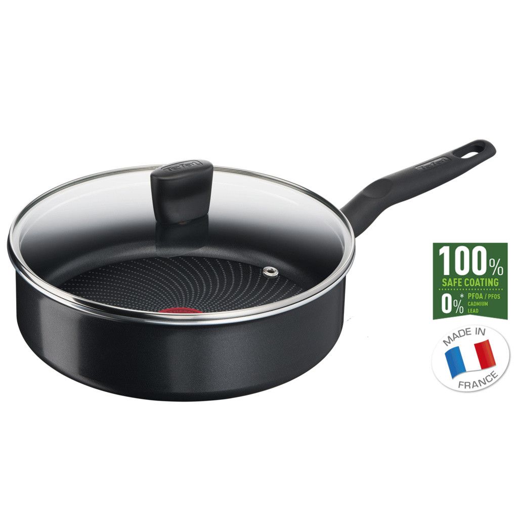 Pannan är utrustad med Tefals slitstarka non-stick-beläggning, vilket gör den perfekt för fettfri tillagning och enkel rengöring. Thermo-Signal™ visar tydligt när pannan är optimalt uppvärmd, så att du alltid får bästa stekyta och rätt tillagningspunkt.