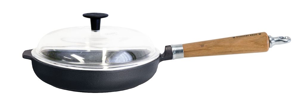 Ronneby Bruk, Traktörstekpanna Gjutjärn 24 cm Glaslock & Massiv Ek Handtag