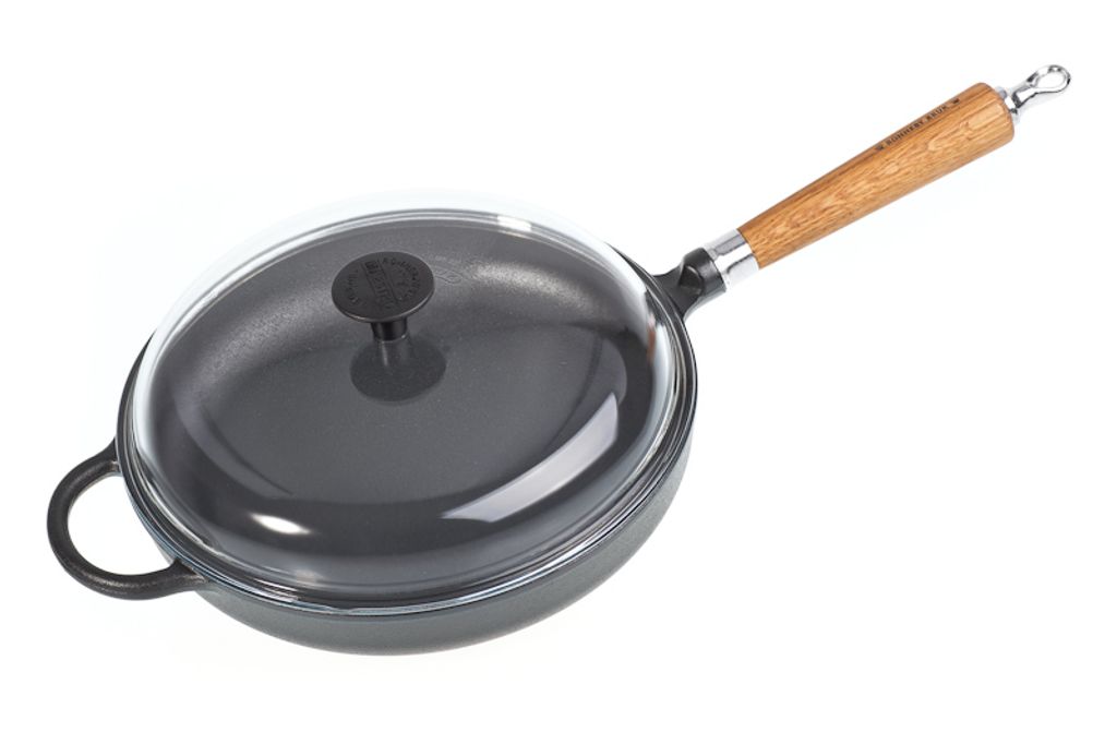 Ronneby Bruk, Traktörstekpanna Gjutjärn 28 cm Glaslock & Massiv Ek Handtag