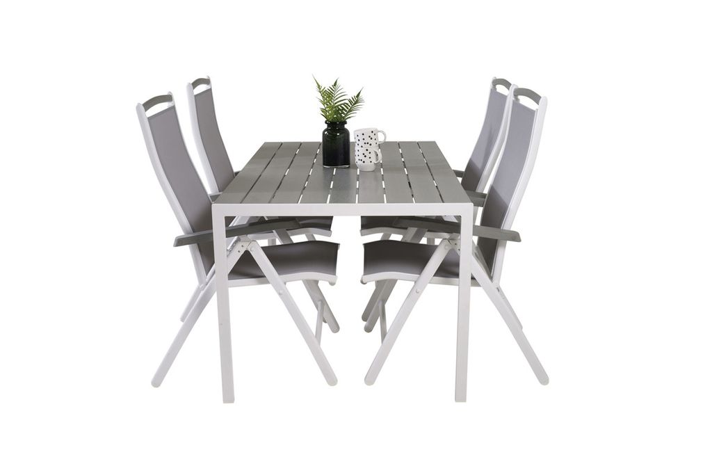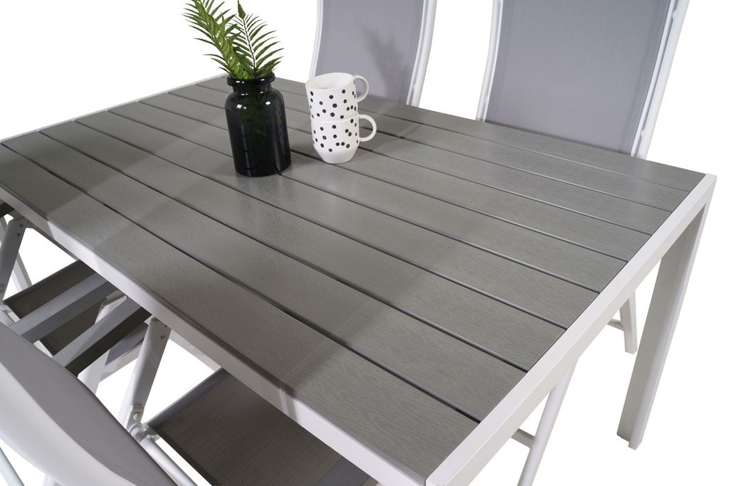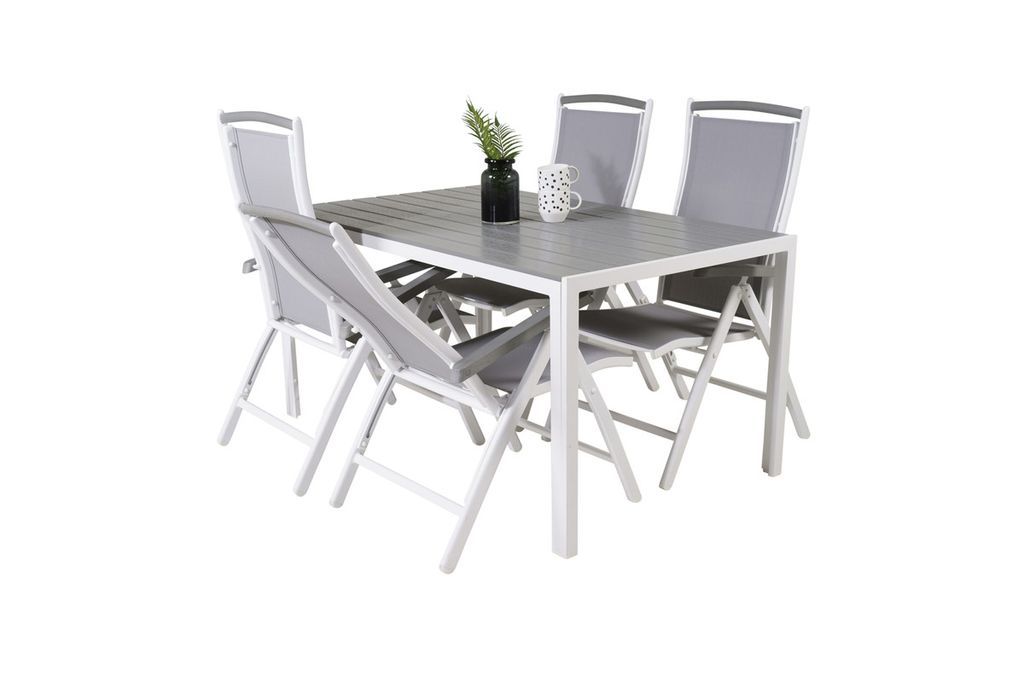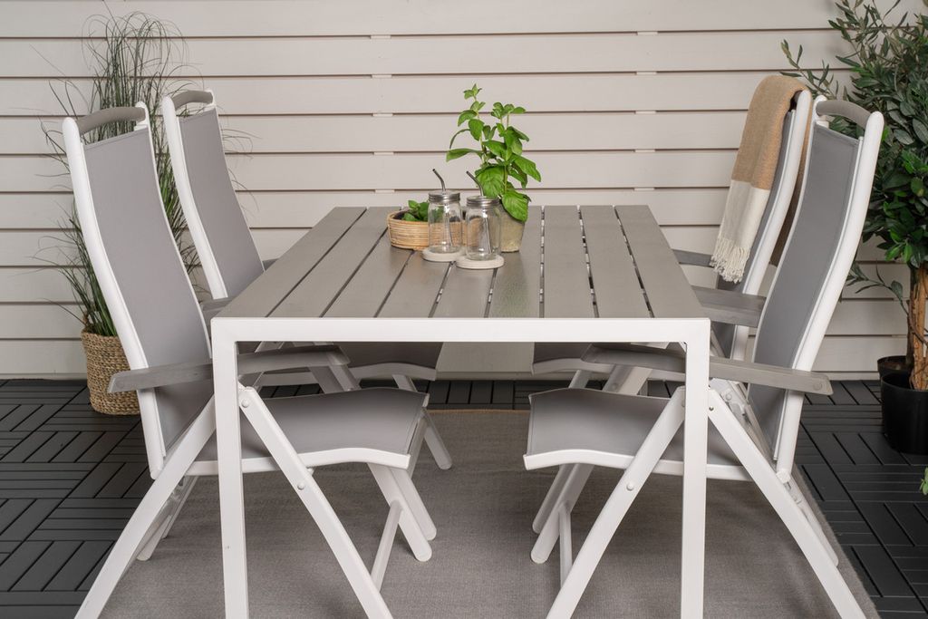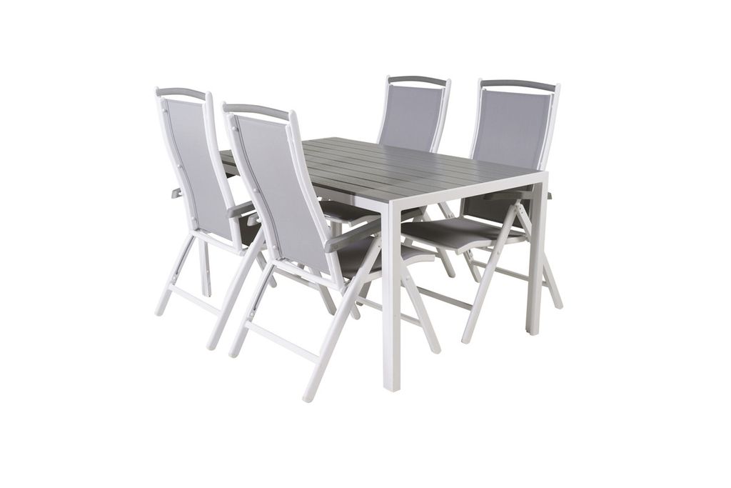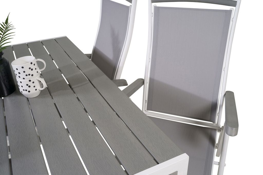 Venture Home Levels & Copacabana Rektangulärt Matbord 160 x 100 Vit + 6 st Reclinerstolar Grå