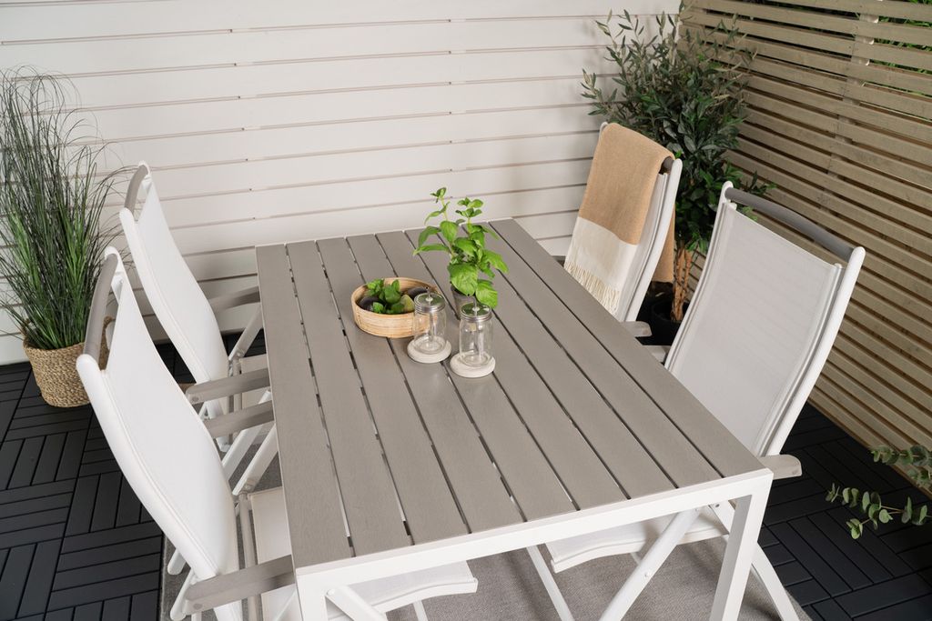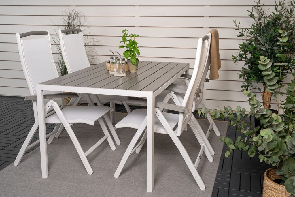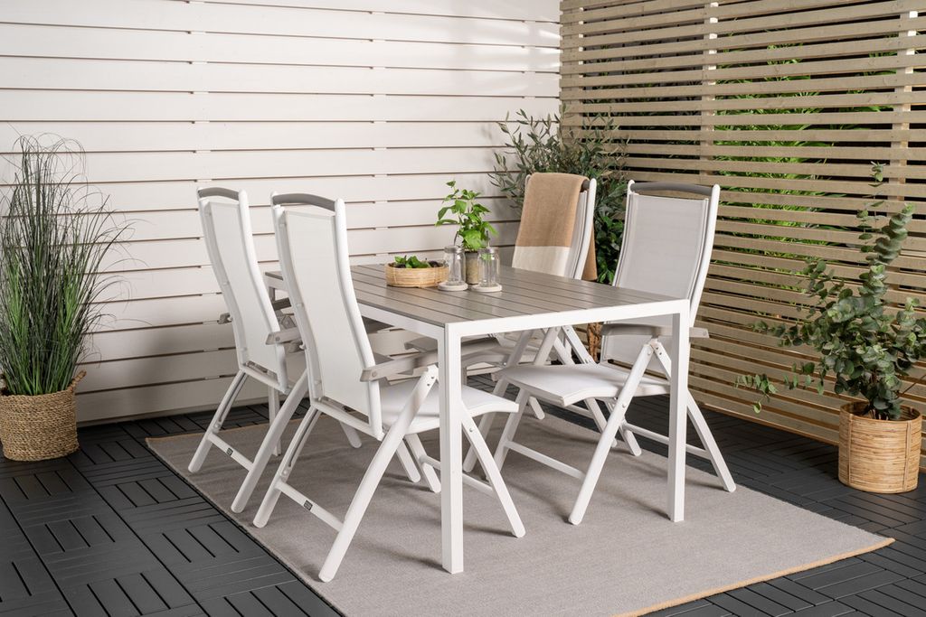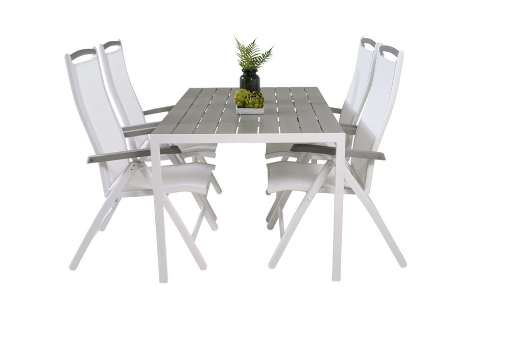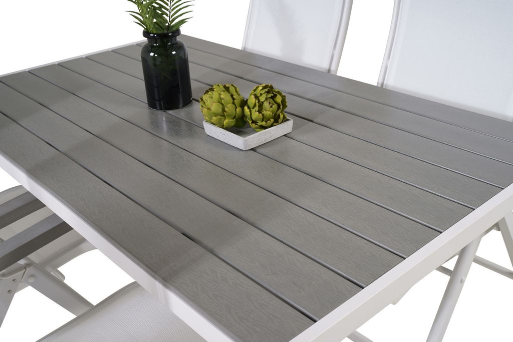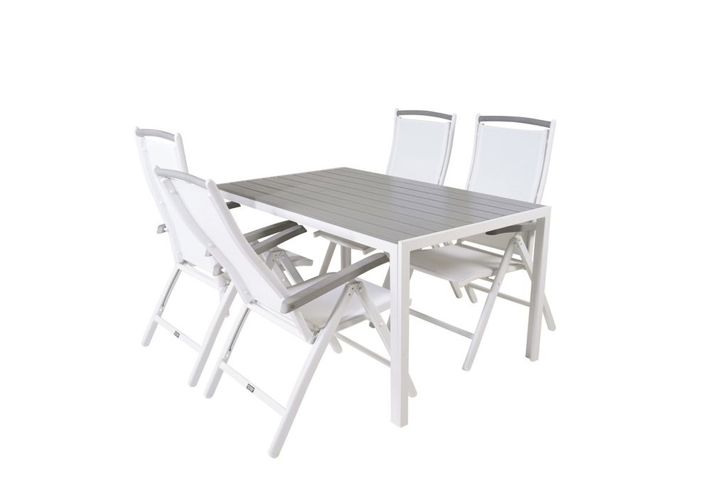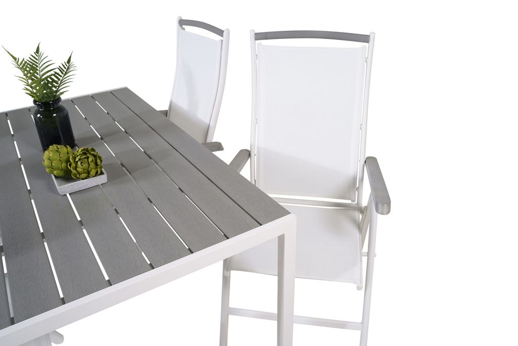 Venture Home Levels & Copacabana Rektangulärt Matbord 160 x 100 Vit + 6 st Reclinerstolar Grå