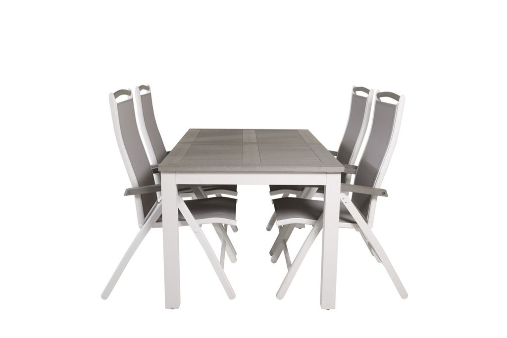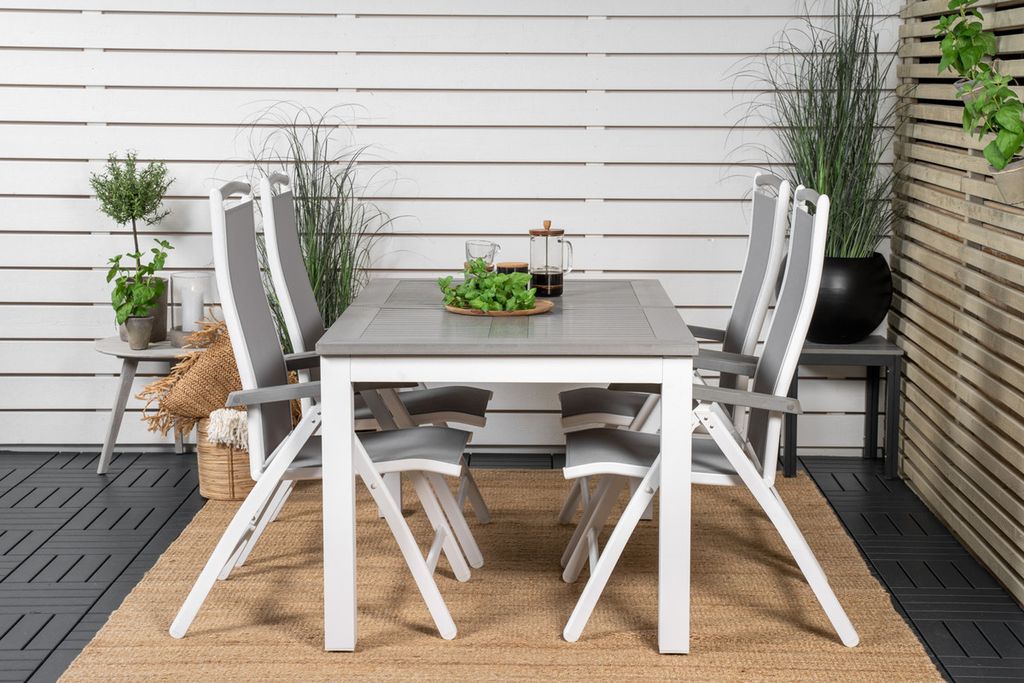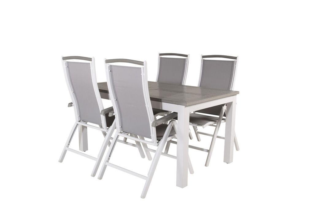 Venture Home Levels & Copacabana Rektangulärt Matbord 160 x 100 Vit + 6 st Reclinerstolar Grå