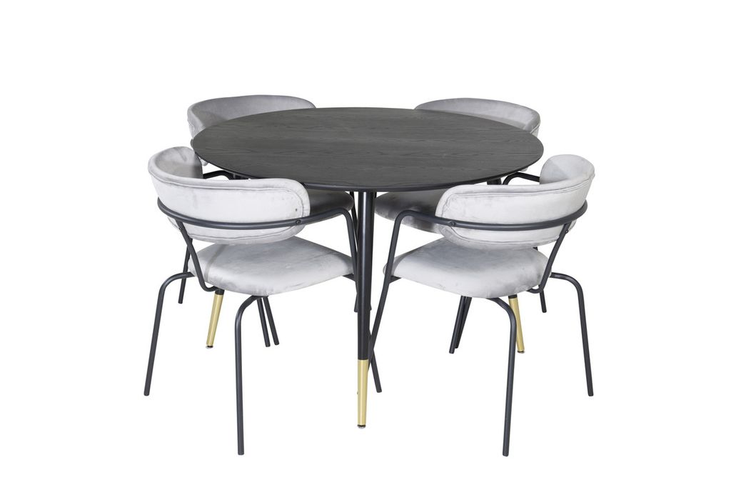 Venture Home Alma & Panama Runt Matbord ⌀120 Svart + 4 st Positionsstolar Svart