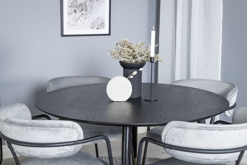Venture Home Alma & Albany Runt Matbord ⌀120 Svart + 4 st Positionsstolar Svart