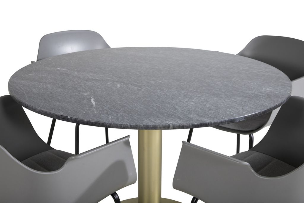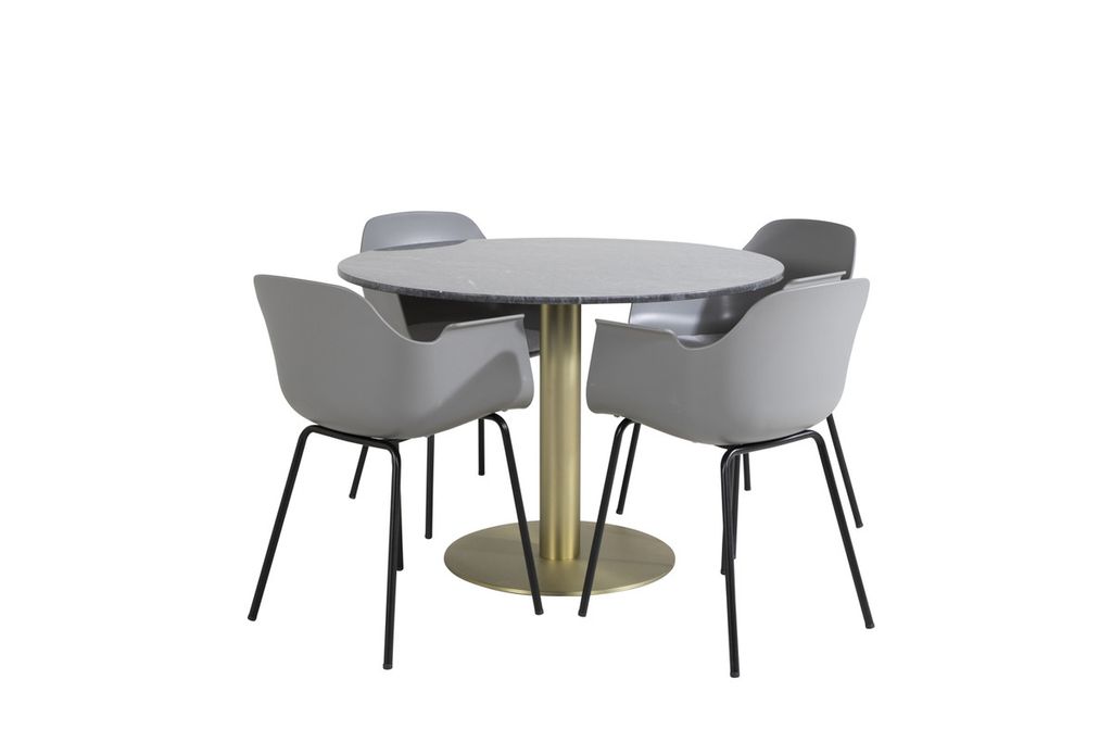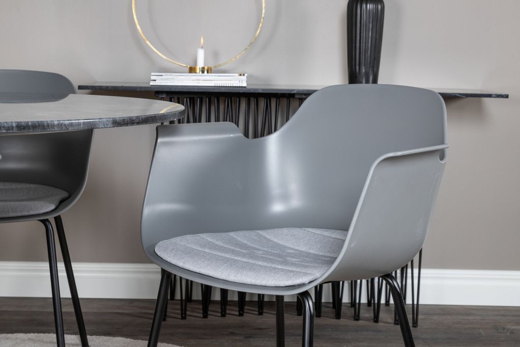 Det eleganta matbordet i marmor i serien Estelle kombineras här karmstolar i serien Comfort i en trendig design. Matgruppen är som gjort för dig som vill skapa en ombonad och modern känsla i hemmet.