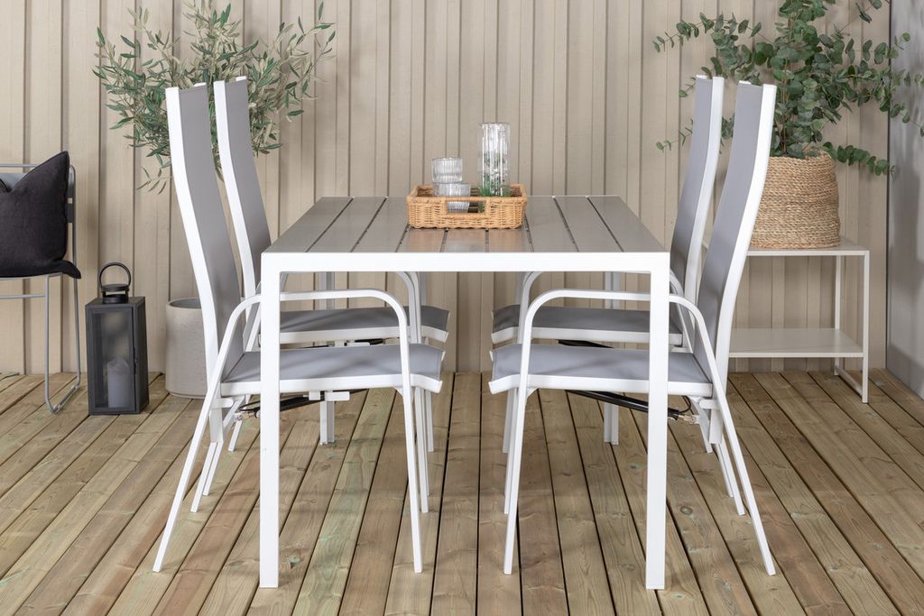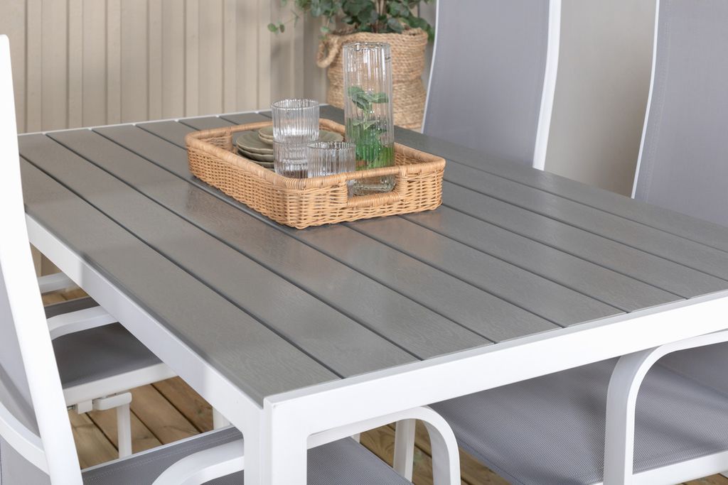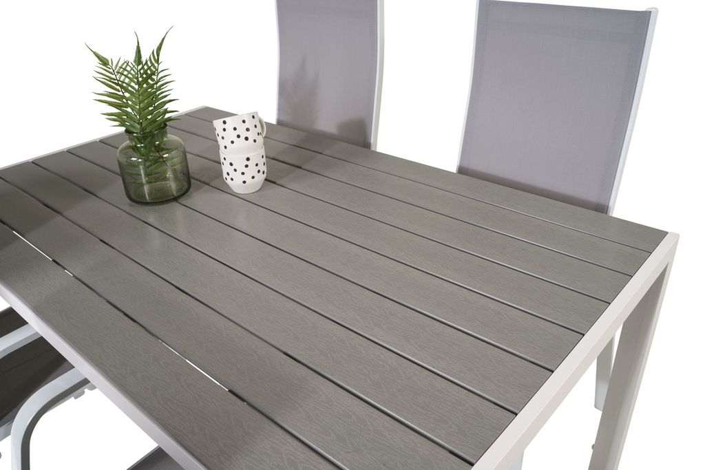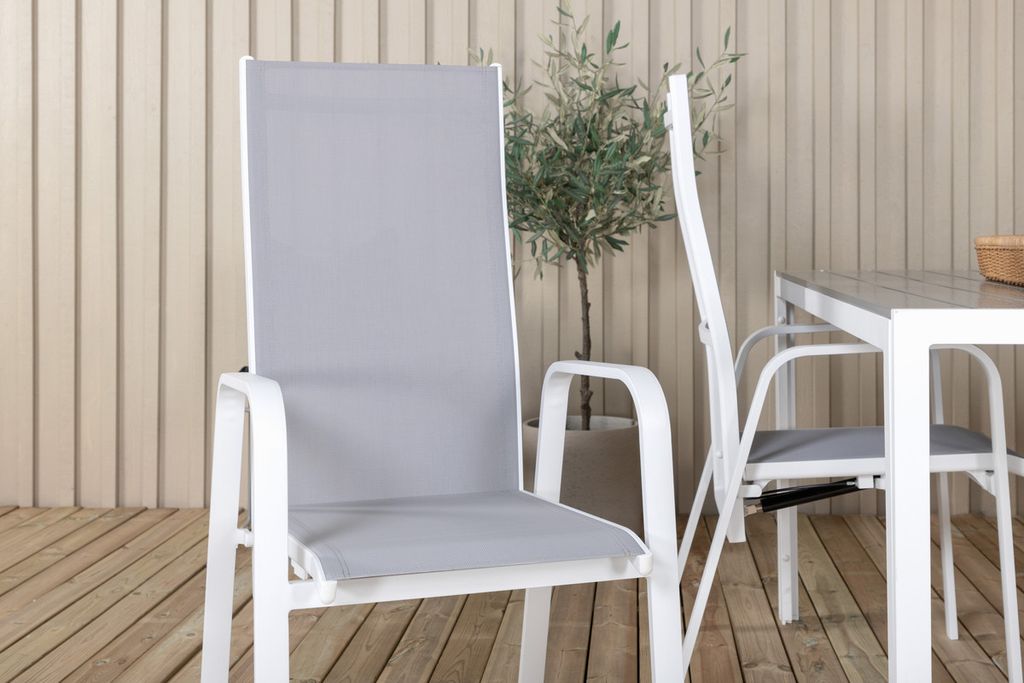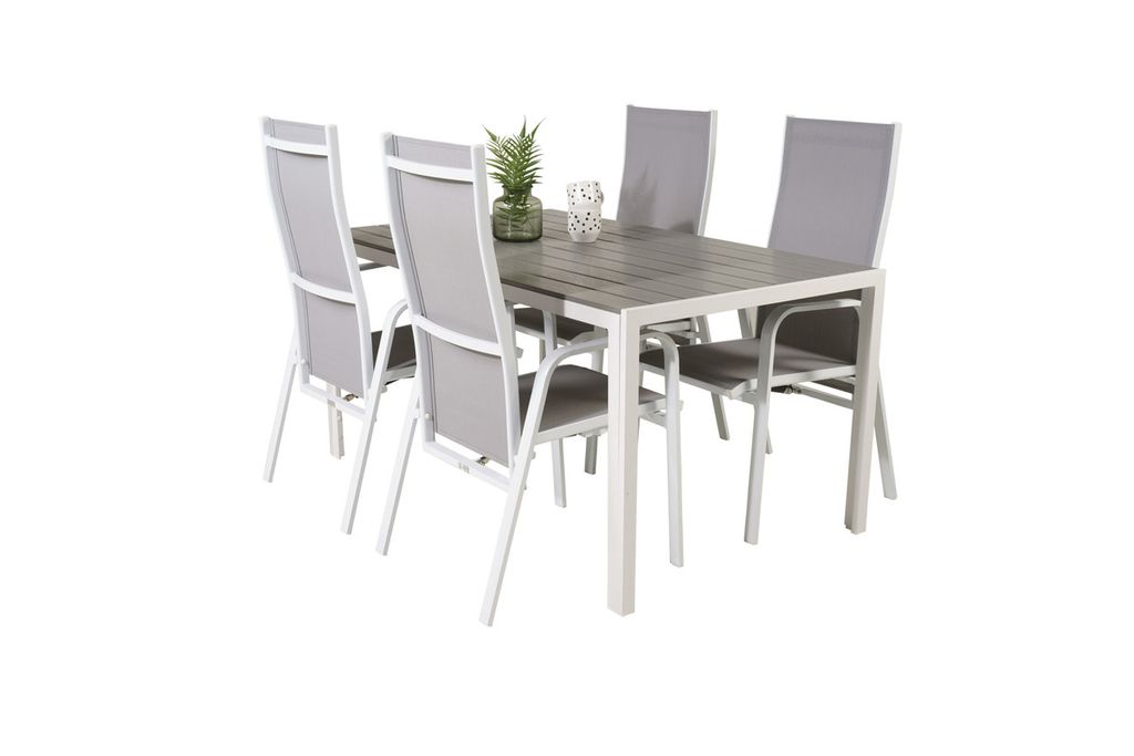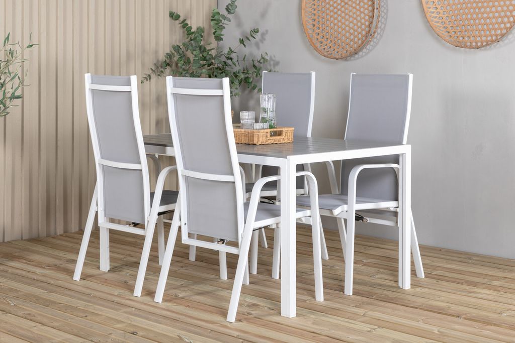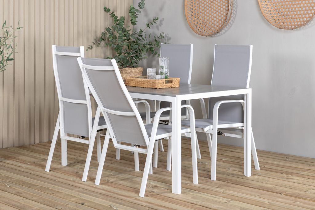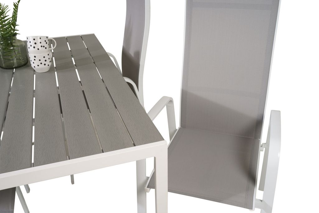 Venture Home Levels & Copacabana Rektangulärt Matbord 160 x 100 Vit + 6 st Reclinerstolar Grå