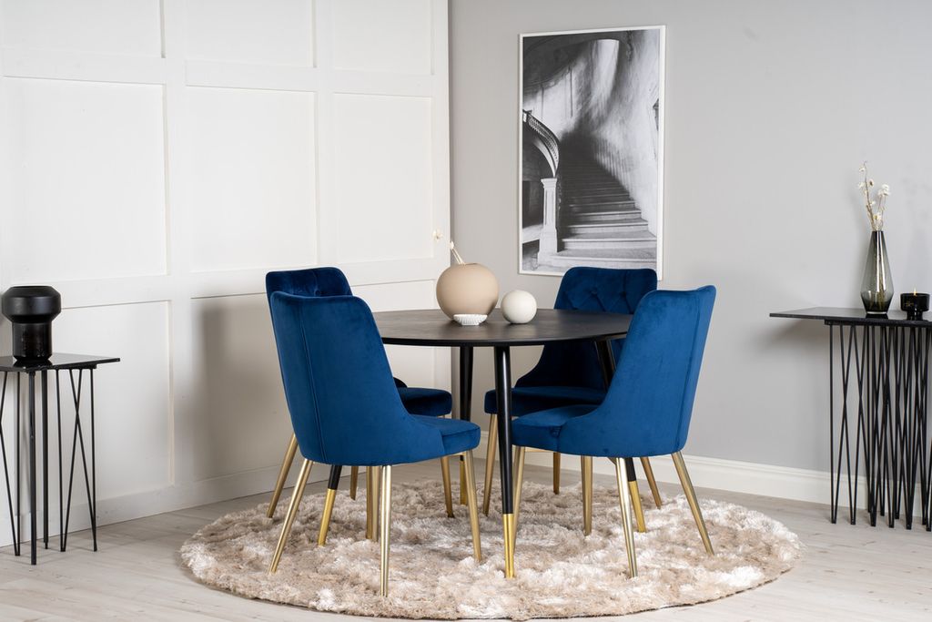 Möblera vardagsrummet med en härlig färgklick! Här kombineras vårt eleganta matbord Dipp med vackra matstolar Velvet i smäcker deisgn! En matgrupp med trendiga detaljer som passar lika bra till vardags som till fest!