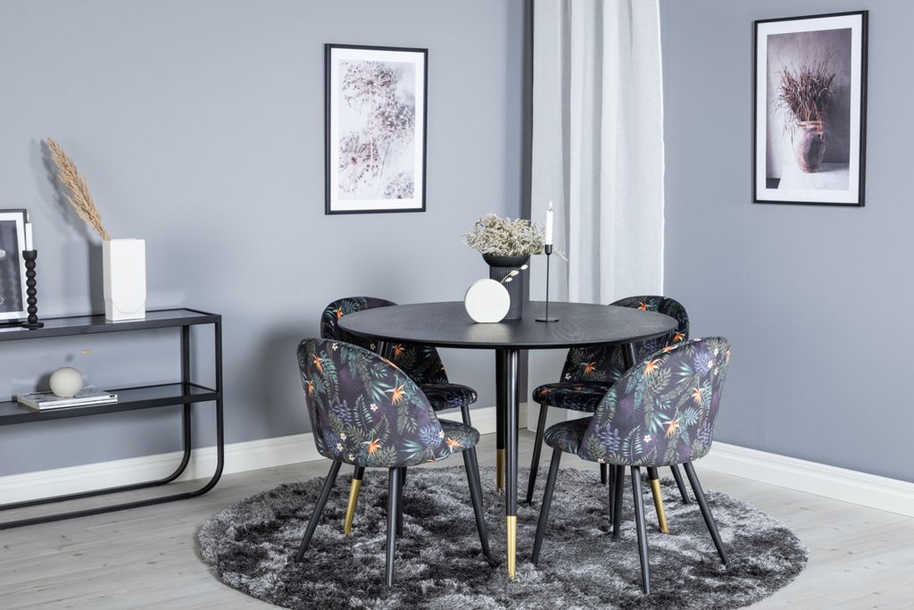 Venture Home Alma & Panama Runt Matbord ⌀120 Svart + 4 st Positionsstolar Svart