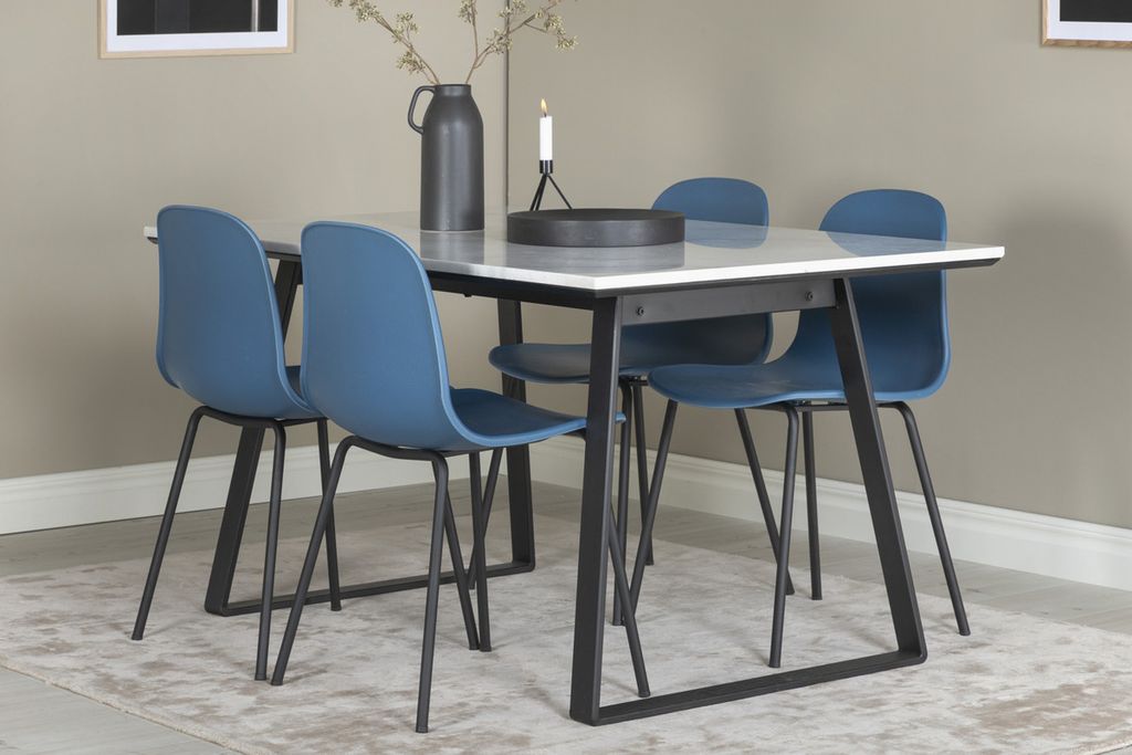 Vårt vackra matbord Estelle i marmor tillsammans med de blå matstolarna Arctic. Sätt färg på hemmet och bjud in till många härliga stunder framöver!