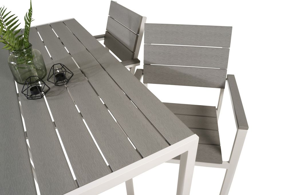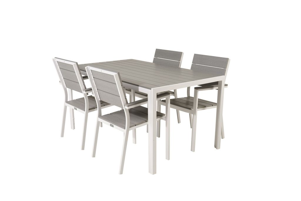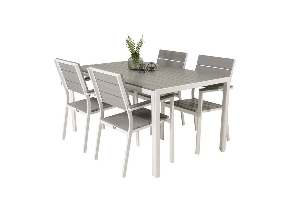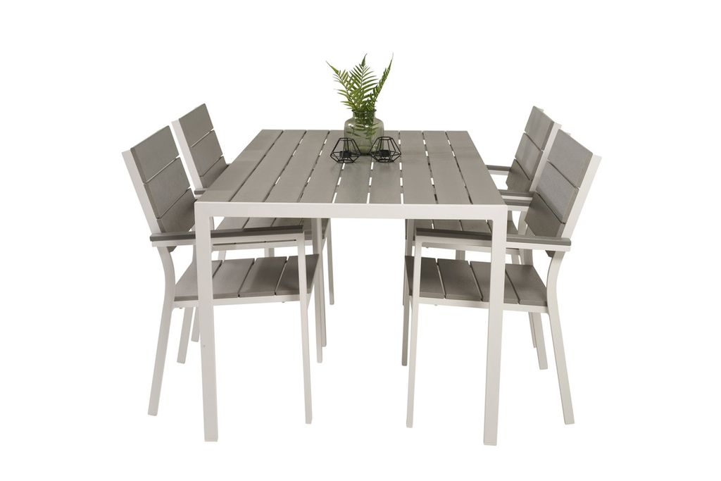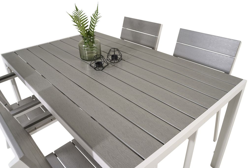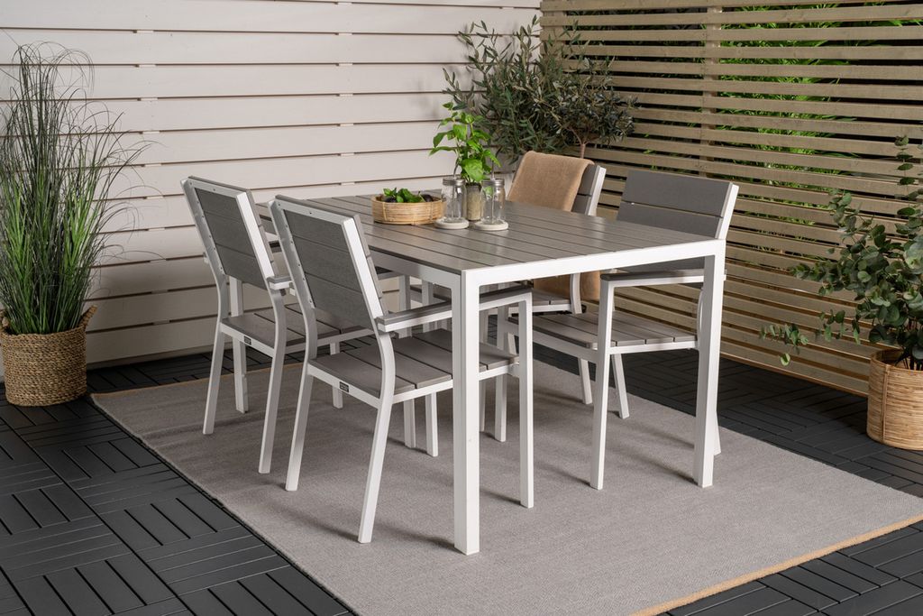 Venture Home Levels & Copacabana Rektangulärt Matbord 160 x 100 Vit + 6 st Reclinerstolar Grå