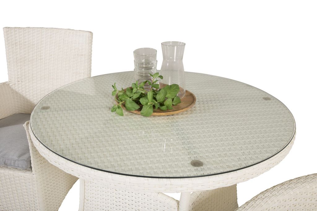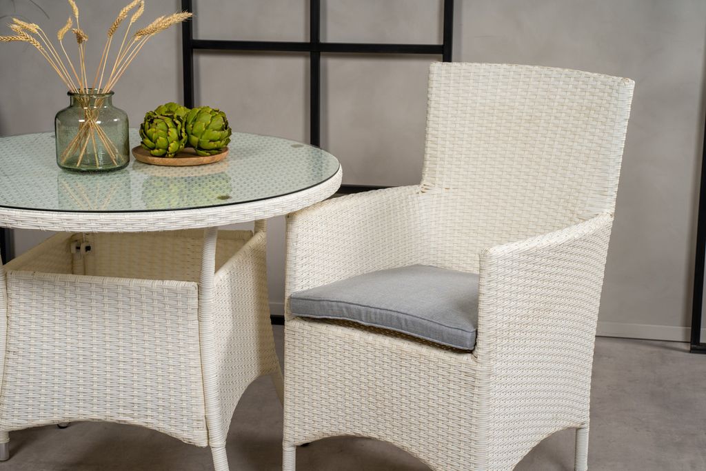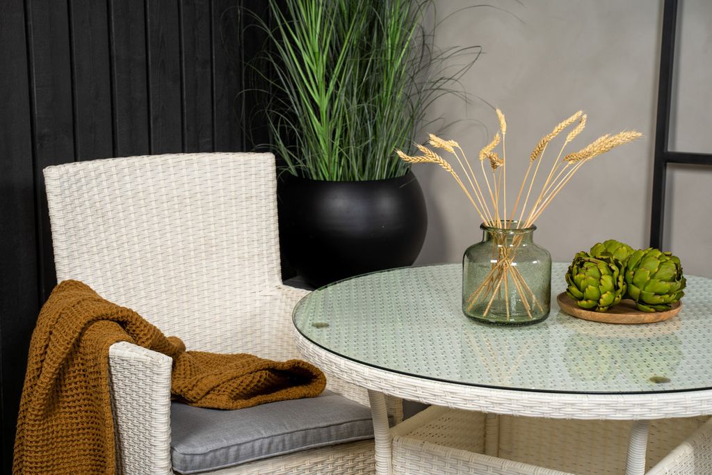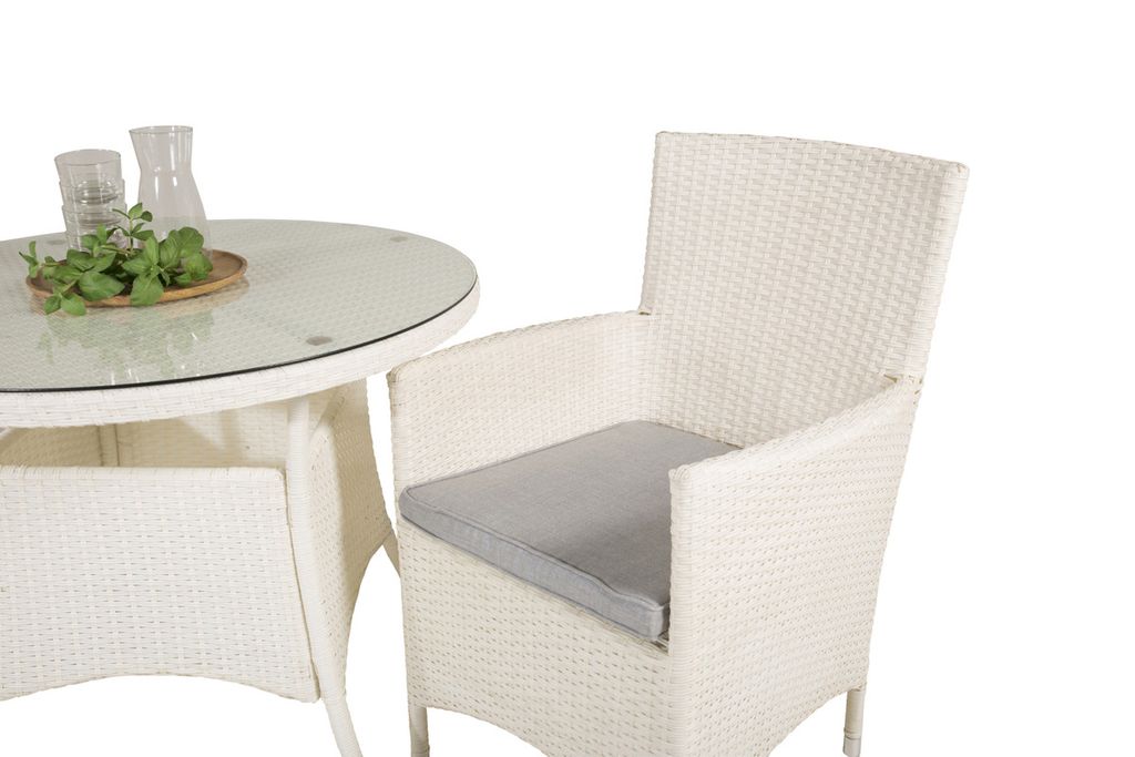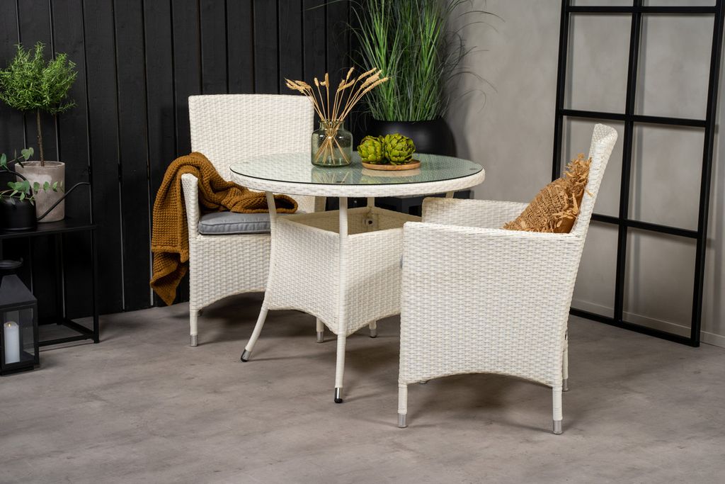 Klassisk matgrupp som passar på de flesta uteplatser! Matbord Volta tillsammans med stolar i serien Malin är som gjort för dig som vill skapa en ombonad och modern känsla på altanen.