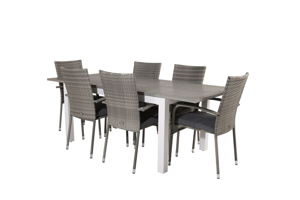 Venture Home Albany & Anna Rektangulärt Matbord 152 x 90 Vit + 6 st Matstolar Grå