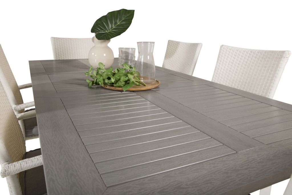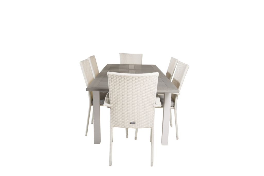 Venture Home Levels & Copacabana Rektangulärt Matbord 160 x 100 Vit + 6 st Reclinerstolar Grå
