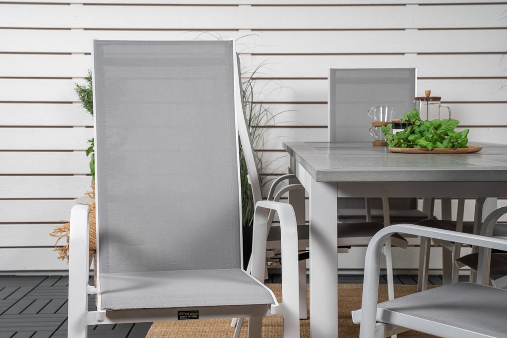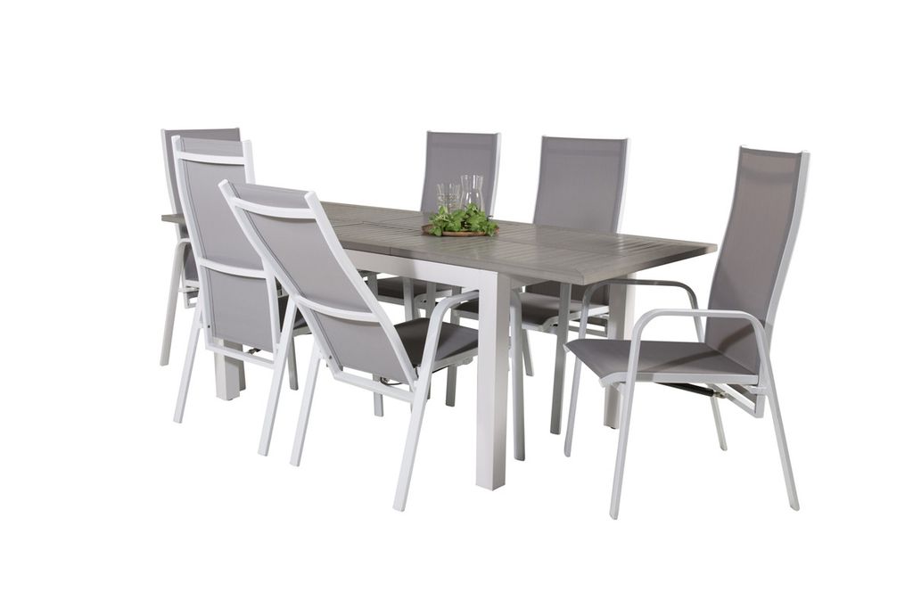 Venture Home Albany & Copacabana Rektangulärt Matbord 152 x 90 Vit + 6 st Reclinerstolar Grå