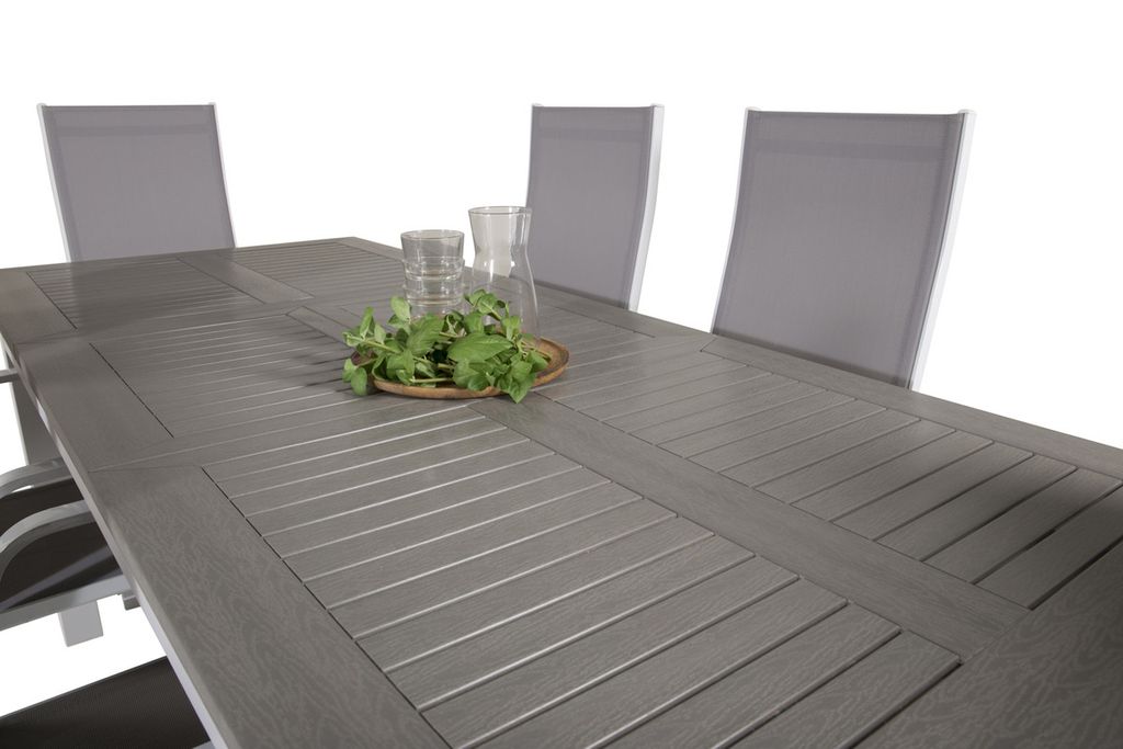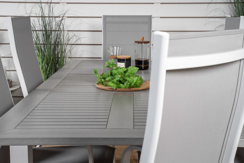Copacabana, våra omtyckta matstolar med fällbart ryggstöd i perfekt kombination med vårt förlängningsbara matbord Albany i klassisk stil. Låt den här stilrena matgruppen i tidlös färgskala pryda din uteplats och förläng sommarens middagsstunder!