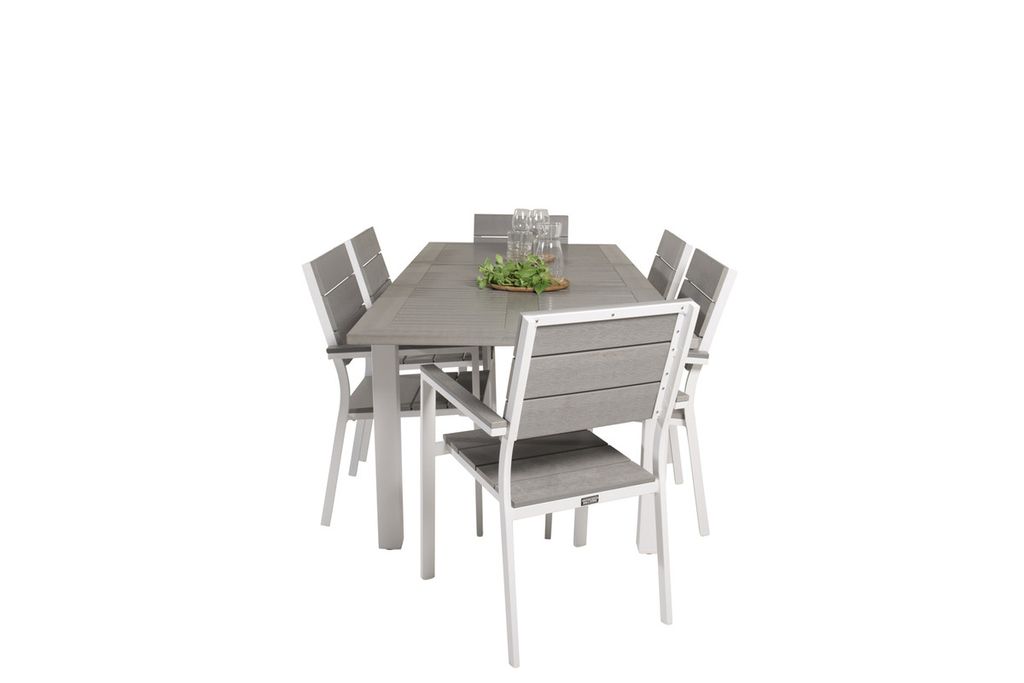 En trendig matgrupp i läcker gråskala går aldrig ur tiden! Möblera din uteplats med matbord Albany i klassisk stil tillsammans med stilrena matstolar i serien Levels. Låt uteplatsen präglas av din nya iögonfallande matgrupp som rymmer plats för alla nära och kära!