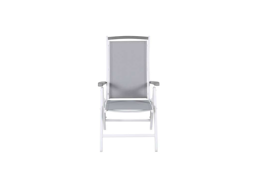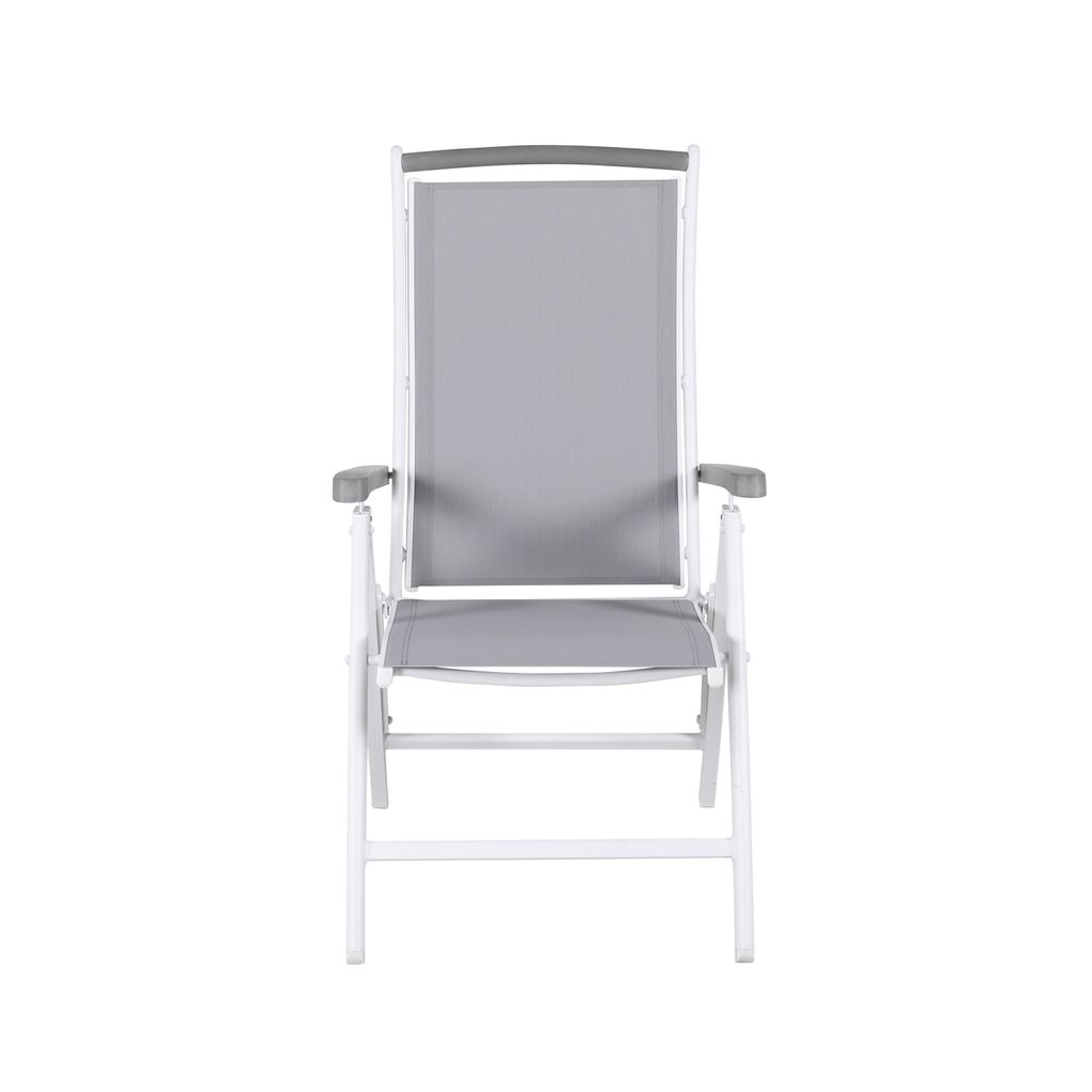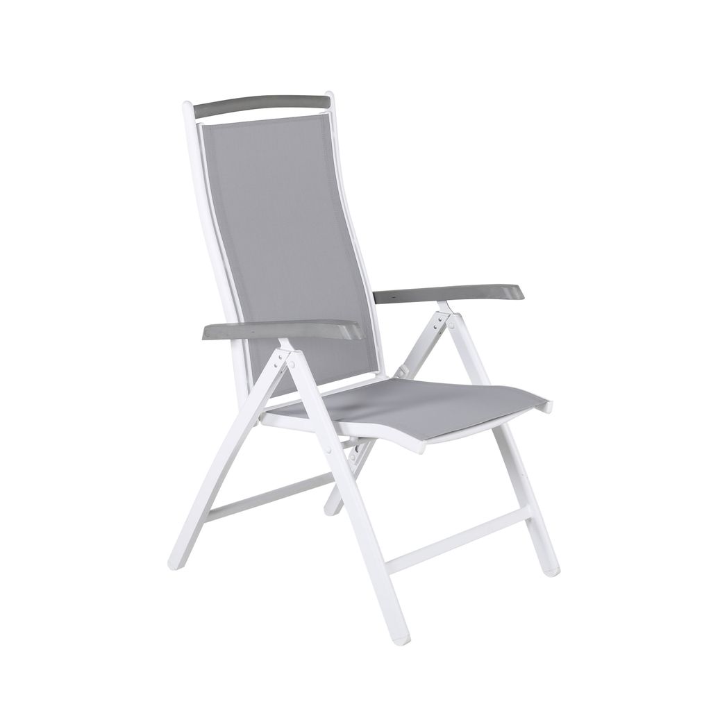 Albany positionsstol kombinerar komfort och stil med fällbart ryggstöd och eleganta armstöd i grått.