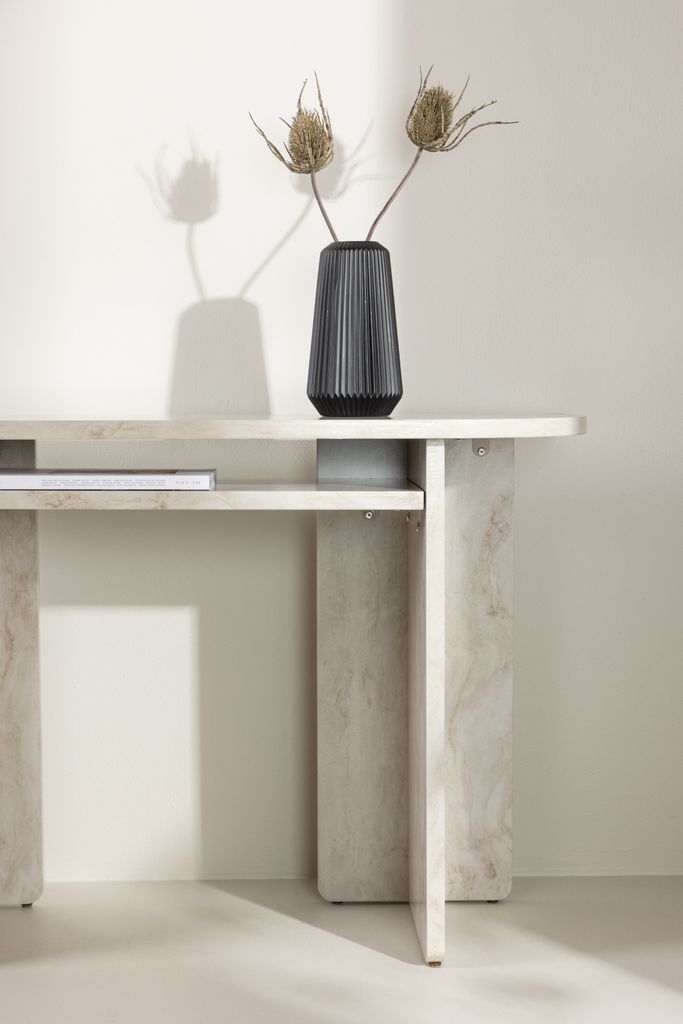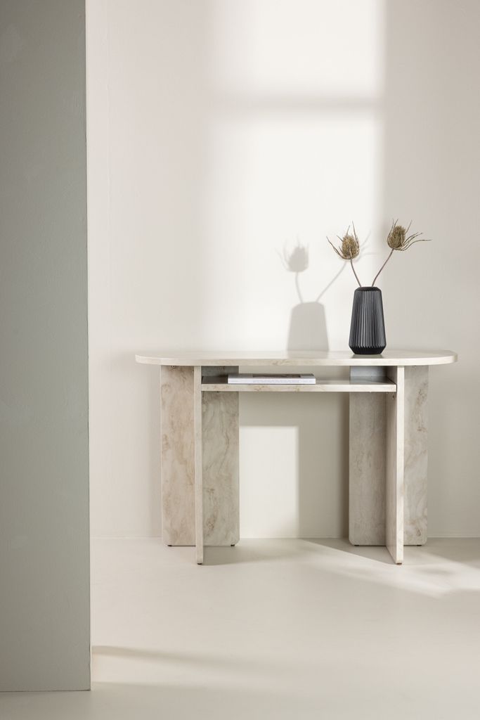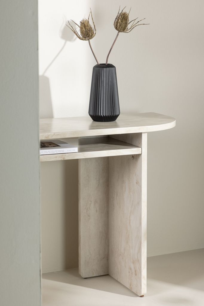 Elegant konsolbord med marmorlook, perfekt för hall eller vardagsrum. Praktisk förvaring och stilren design.