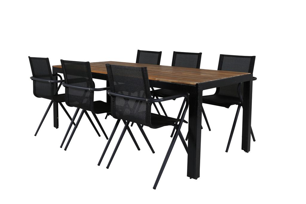 Venture Home Alina & Bois 6 st Matstolar Svart + Rektangulärt Matbord 205 x 90 Natur