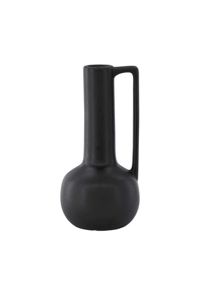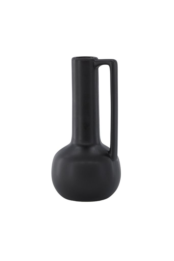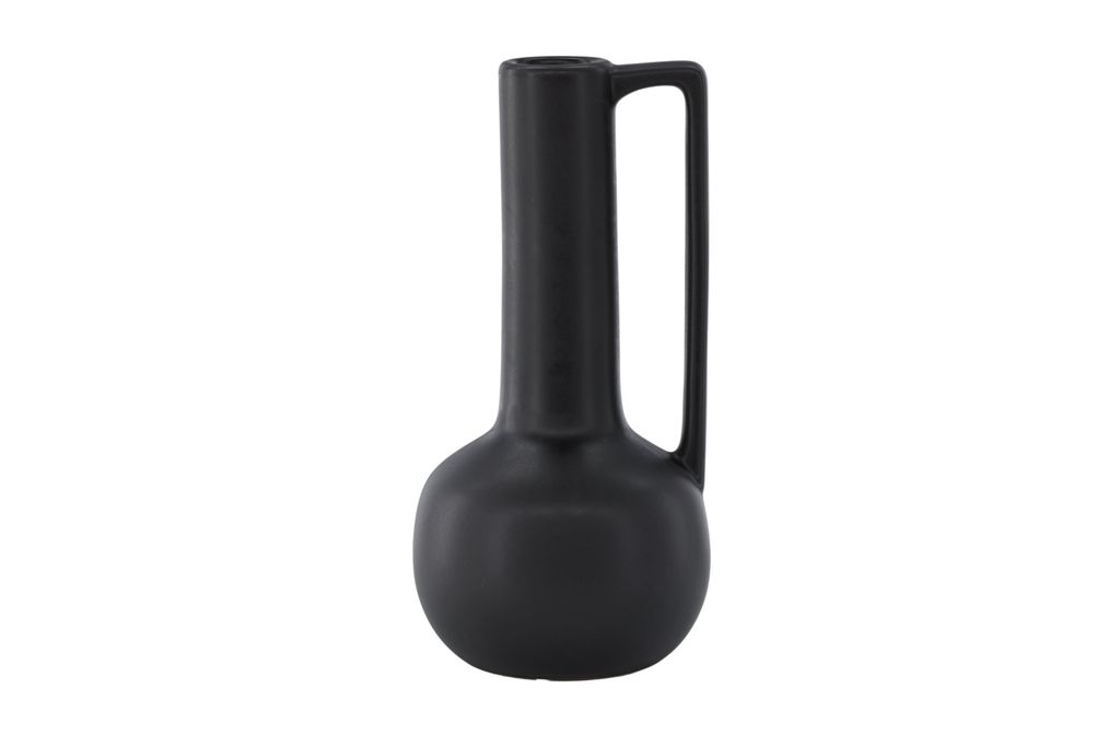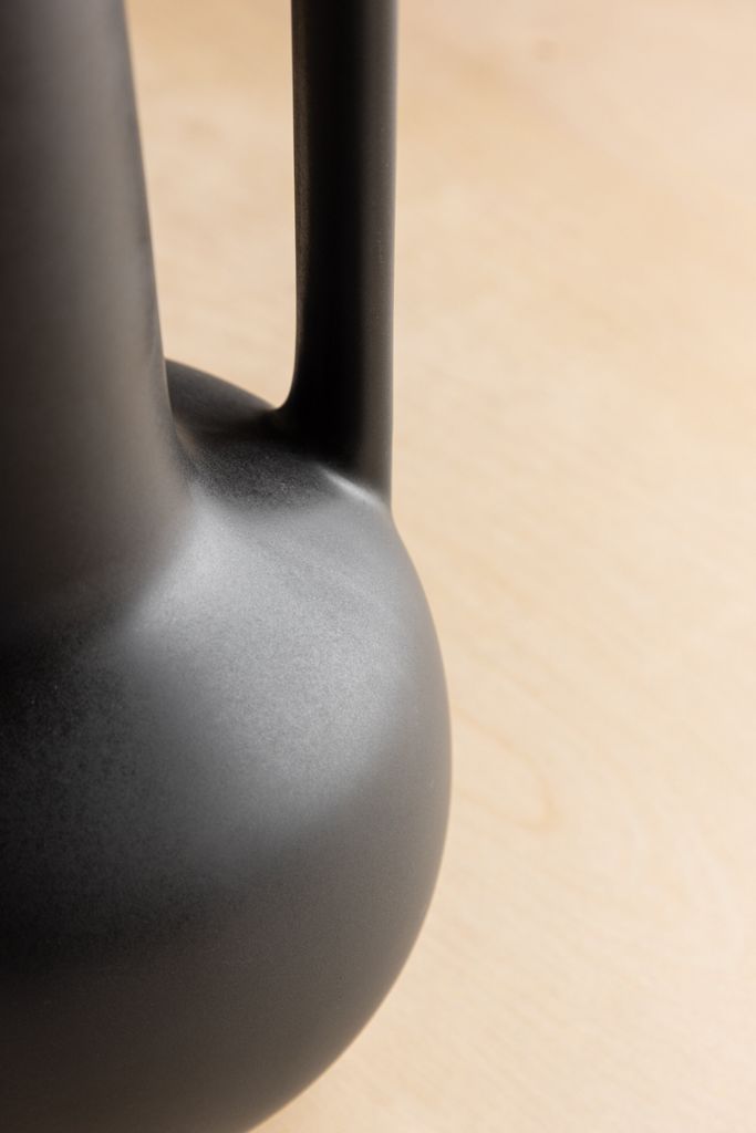 Allis vas i stengods med modern svart design och elegant lång hals, perfekt för blommor eller som dekorativ detalj.