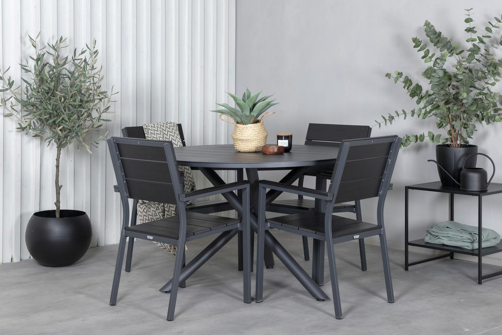 Venture Home Alma & Panama Runt Matbord ⌀120 Svart + 4 st Positionsstolar Svart