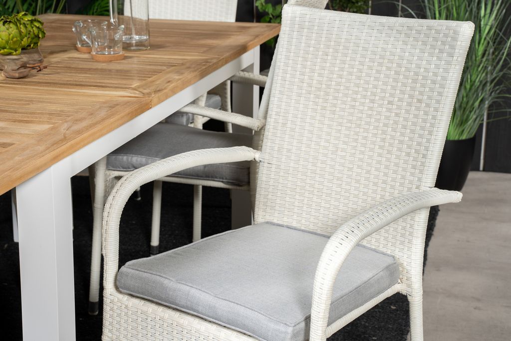 Uppgradera din uteplats med Venture Home Anna Matstol 2-pack. Dessa eleganta stolar är tillverkade i slitstark konstrotting med en tidlös vit färg som är enkel att matcha med andra möbler. Designen är inte bara stilren utan också praktisk – stolarna är stapelbara för enkel förvaring.