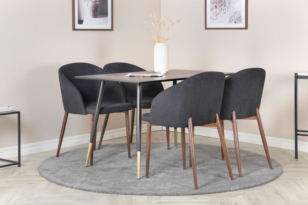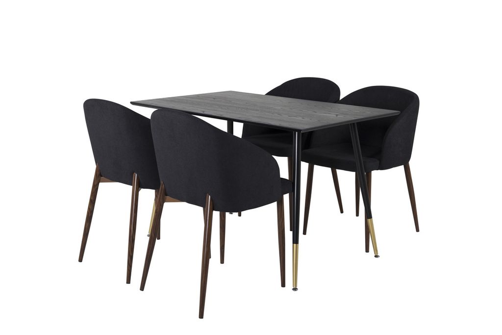 Venture Home Arch & Dipp 4 st Matstolar Svart + Rektangulärt Matbord 120 x 85 Svart