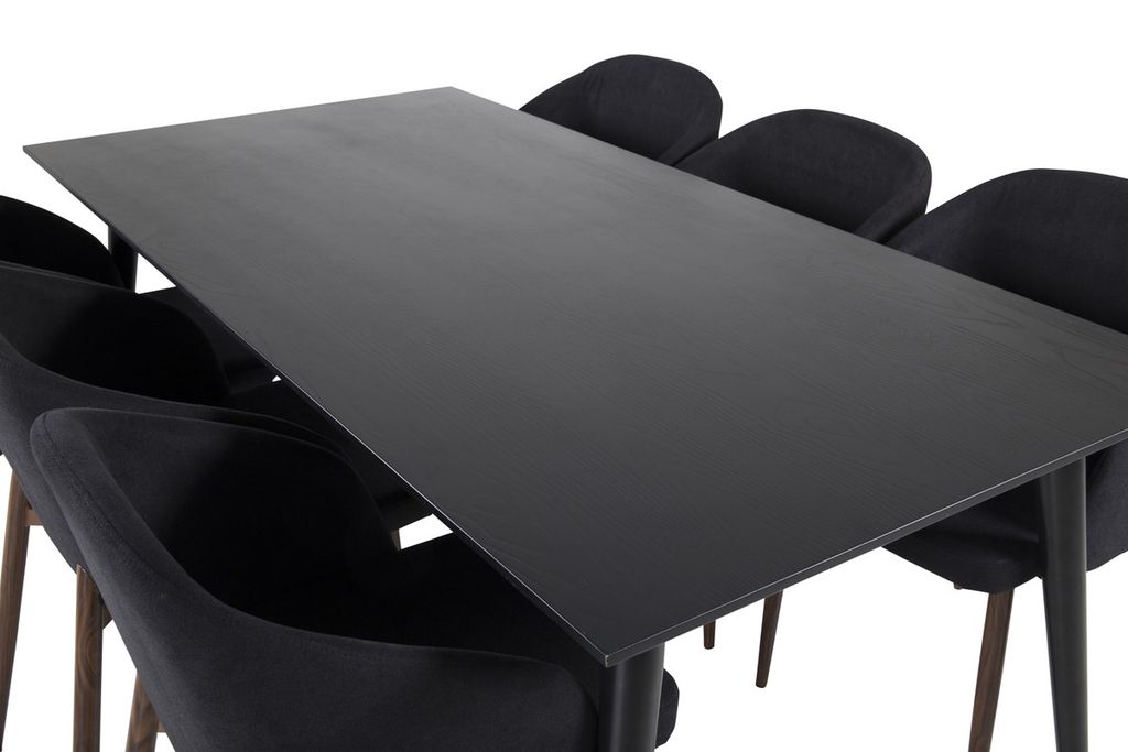 Venture Home Uno & Polly Rektangulärt Matbord 200 x 90 Svart + 6 st Matstolar Svart