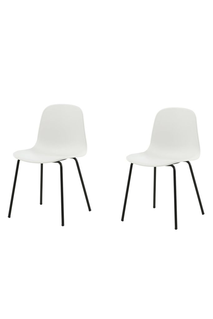 Upptäck Venture Home Arctic Matstol 2-pack, där stil möter funktionalitet. Dessa matstolar är designade med en rundad rygg och sits i vit helgjuten plast, vilket ger en modern och ren look. Benen är tillverkade i svart pulverlackerad metall, vilket ger en elegant kontrast och stabilitet.