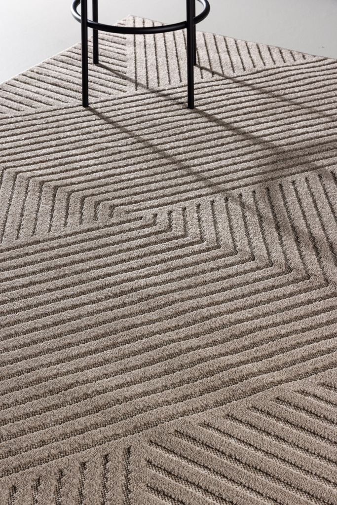 Trendsäker matta i jordnära brun kulör med abstrakt mönster. Perfekt för att addera modern elegans i hemmet.