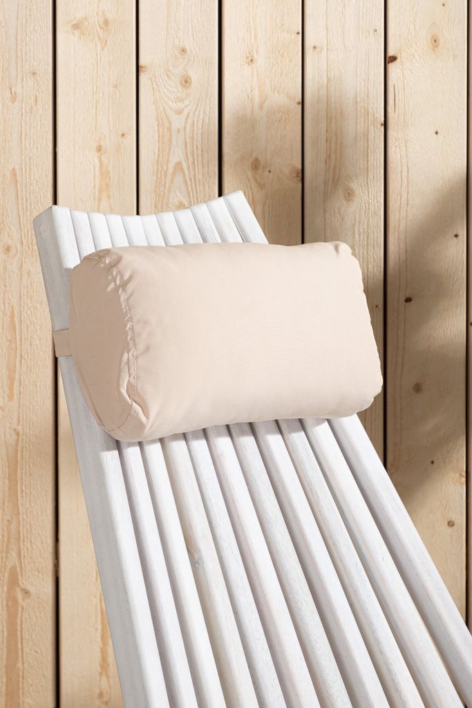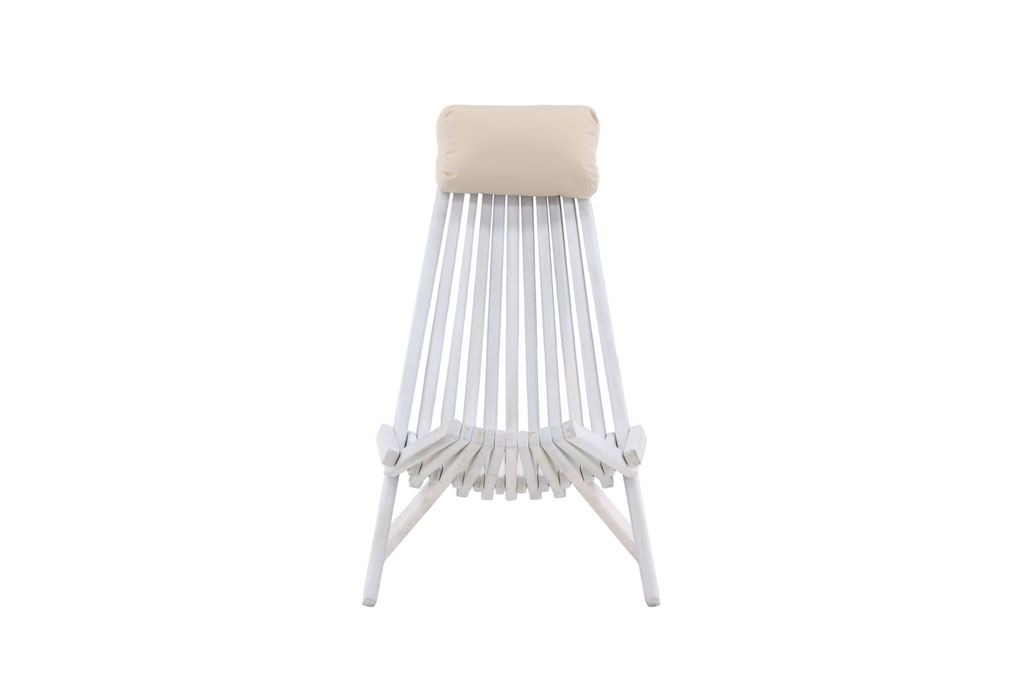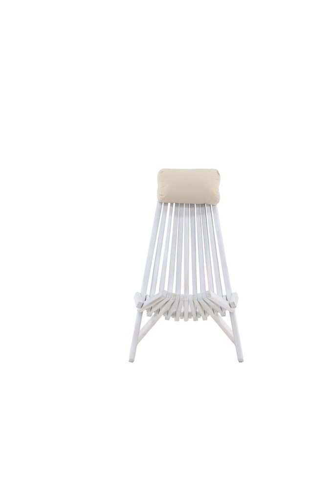 Design och komfort: Asta Loungestol har en slank design med smala ribbor och en bekväm beige dyna, vilket ger optimal komfort. Dynan ger extra stöd och komfort under långa, lata dagar.