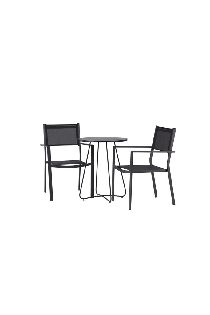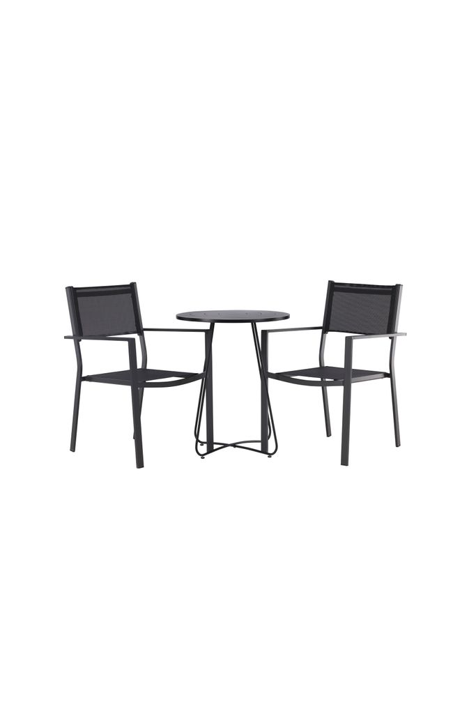 Venture Home Bacong Rund Matgrupp kombinerar stil och funktionalitet för en elegant utemiljö. Det runda cafébordet har en toppskiva och smala ben i svart stål, vilket ger en modern och stilren känsla. Bordet är lätt att placera och passar perfekt för både små och stora utrymmen.