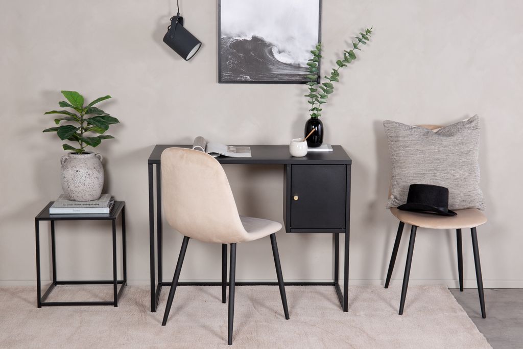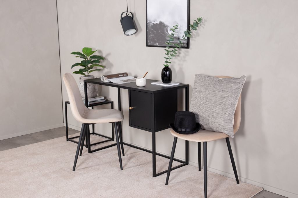 Utforska Bakal skrivbordet från Venture Home - en perfekt kombination av modern industriell design och funktionalitet. Detta nätta skrivbord är tillverkat i svart pulverlackerad stål, vilket ger en stilren och robust känsla som passar in i alla moderna hem.