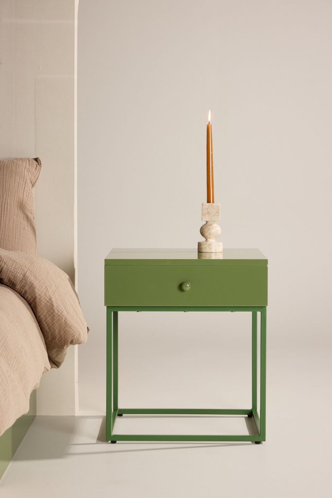 Den gröna nyansen ger en fräsch och lugnande känsla till rummet, vilket bidrar till en avslappnad och harmonisk atmosfär. Oavsett om du har en modern eller traditionell inredning, smälter detta sängbord sömlöst in i olika stilar och skapar en sammanhängande och vacker helhet.