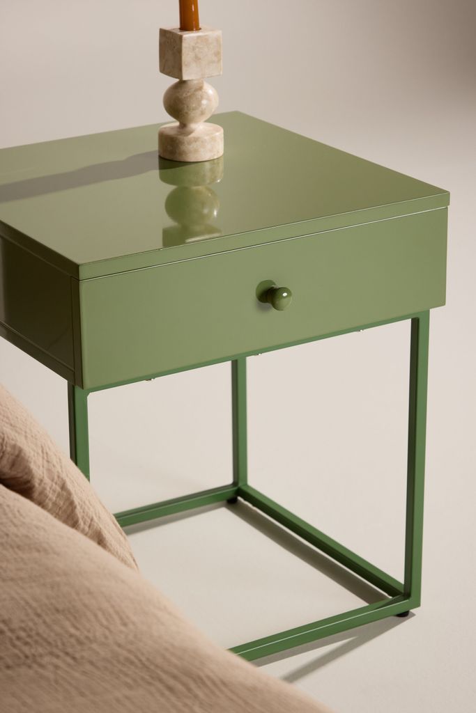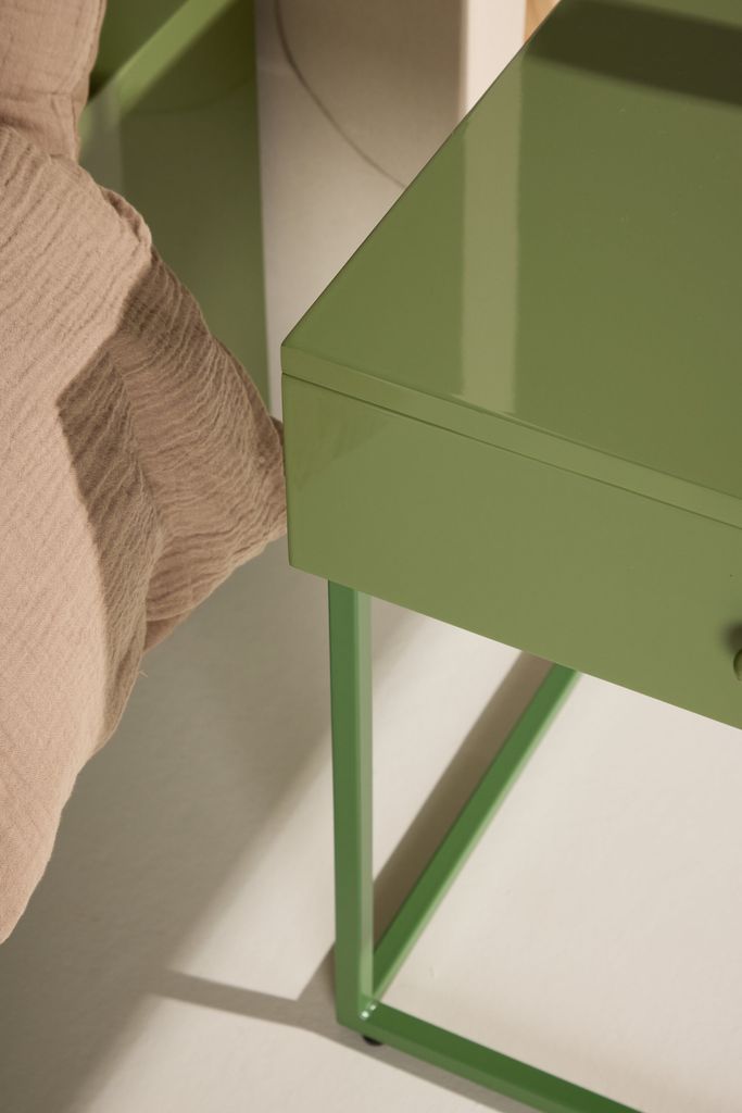 Elegant och funktionellt sängbord i fräsch grön färg med smart förvaring och hållbar konstruktion.