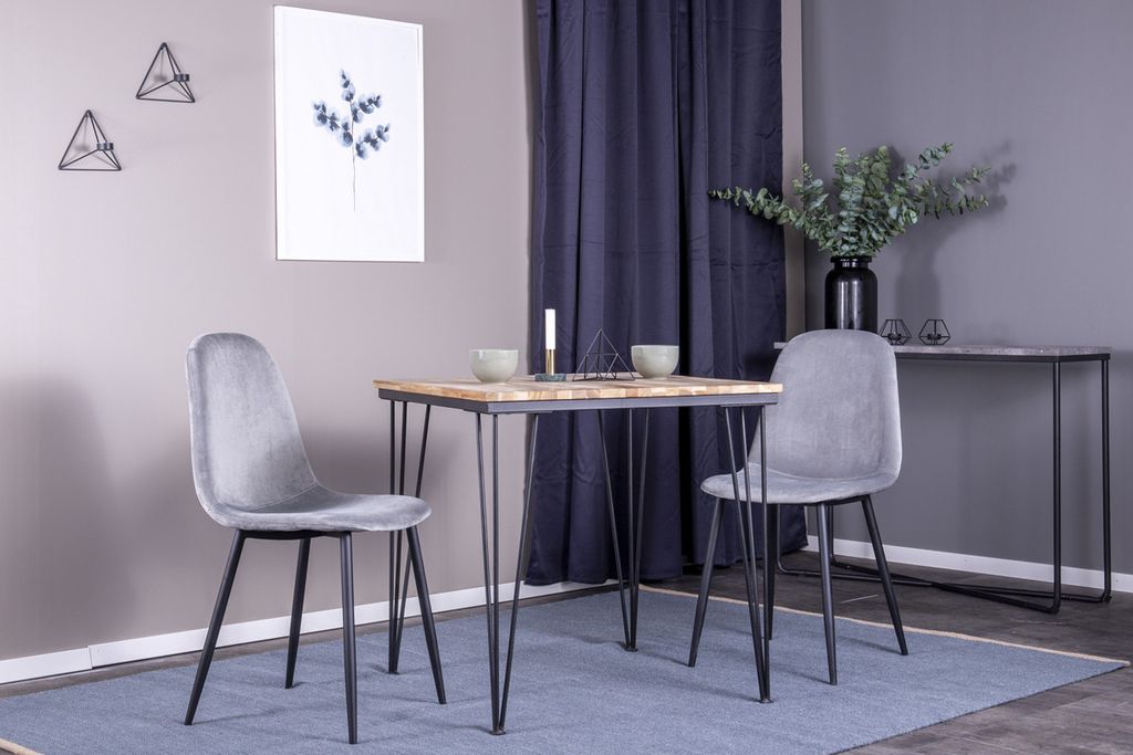 Venture Home Bali & Polar Rektangulärt Matbord 80 x 80 Natur + 2 st Matstolar Grå