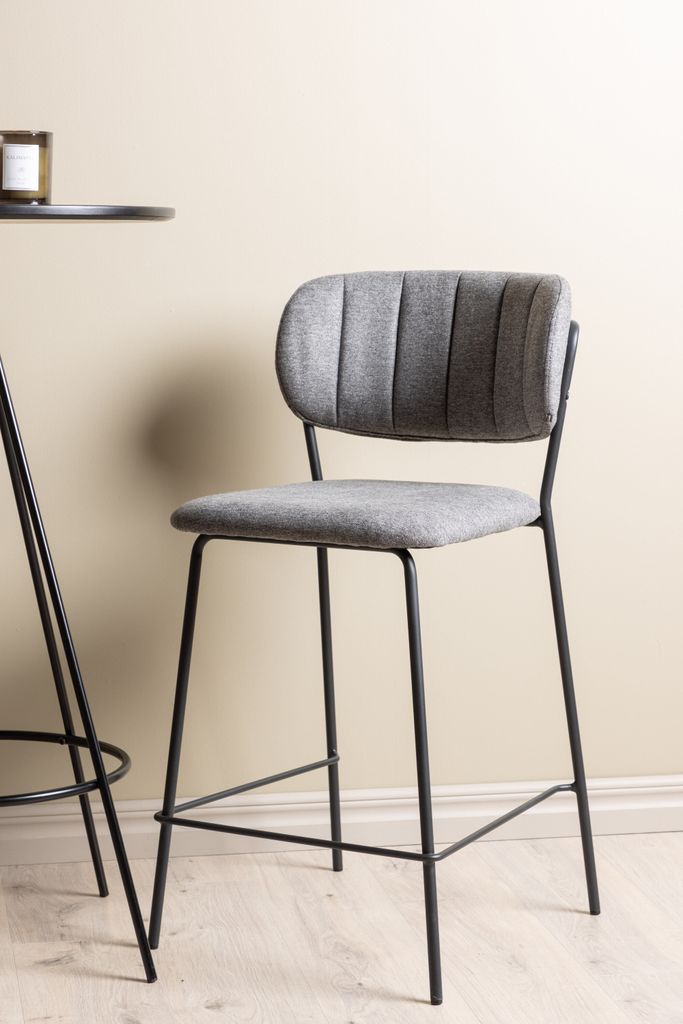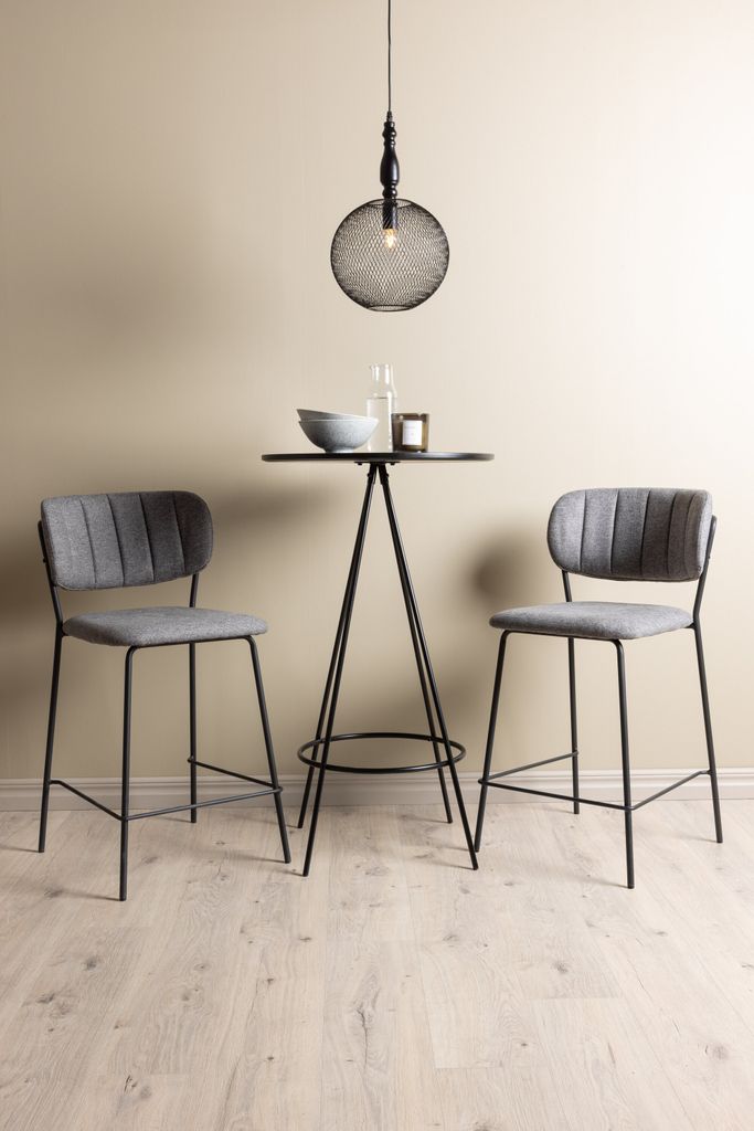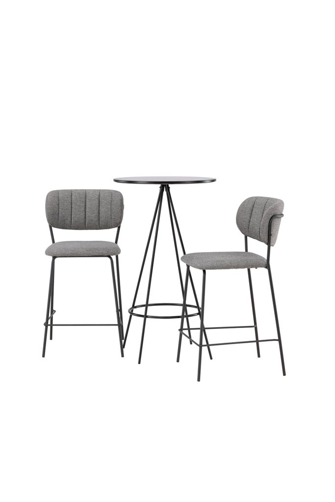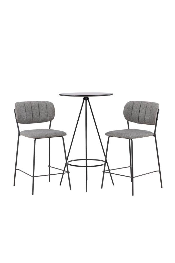 Elegant barset med minimalistisk design. Svart MDF bord och grå polyestertyg stolar. Perfekt för stilfulla hem!