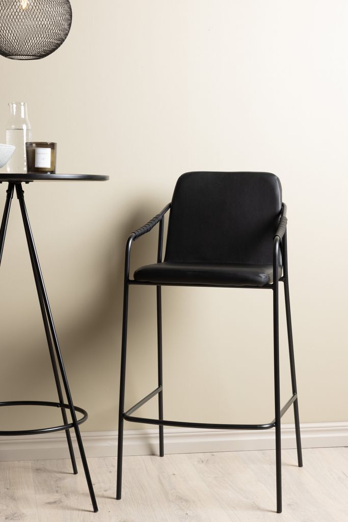 De matchande barstolarna från serien Tvist har en helklädd design i svart PU-läder som ger en lyxig känsla. Sittkomforten förstärks ytterligare av de inbyggda armstöden i svart stål, vilket gör dem perfekta för långa, avslappnade stunder.