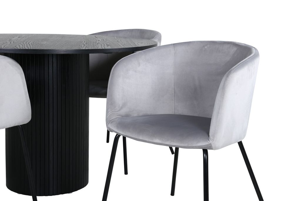 Venture Home Berit & Bianca 4 st Matstolar Grå + Runt Matbord ⌀110 Svart