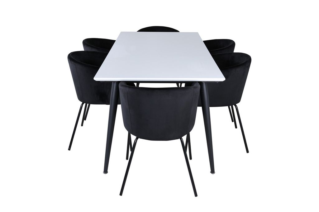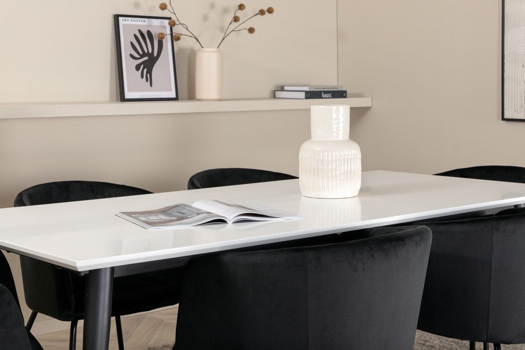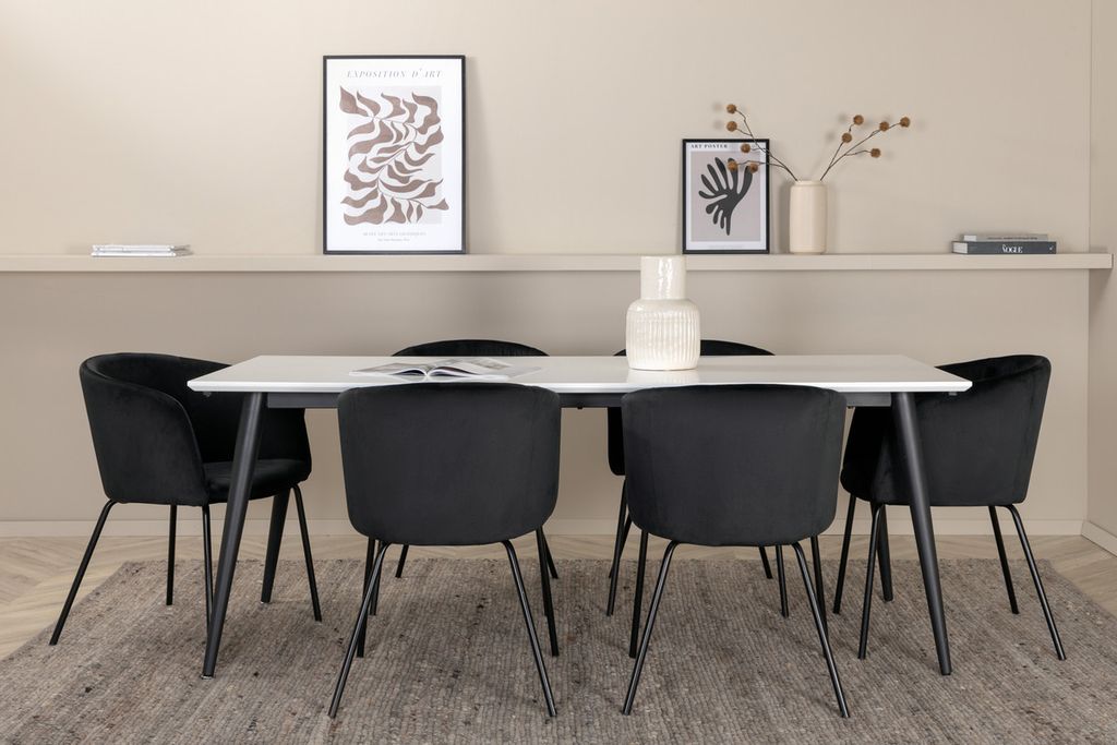 Venture Home Berit & Jimmy 6 st Matstolar Svart + Rektangulärt Matbord 195 x 90 Vit