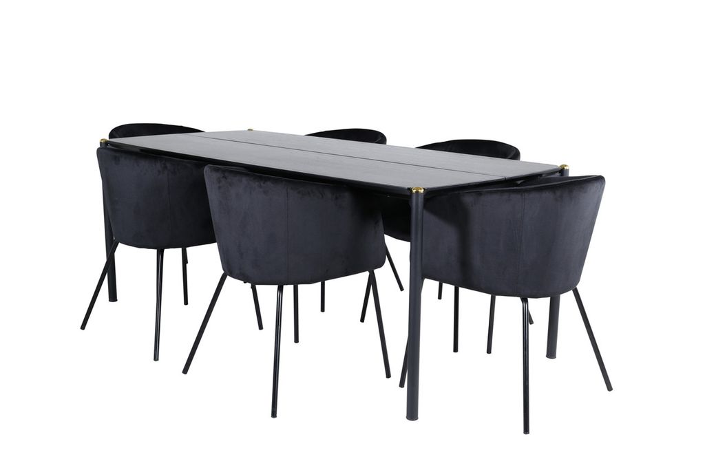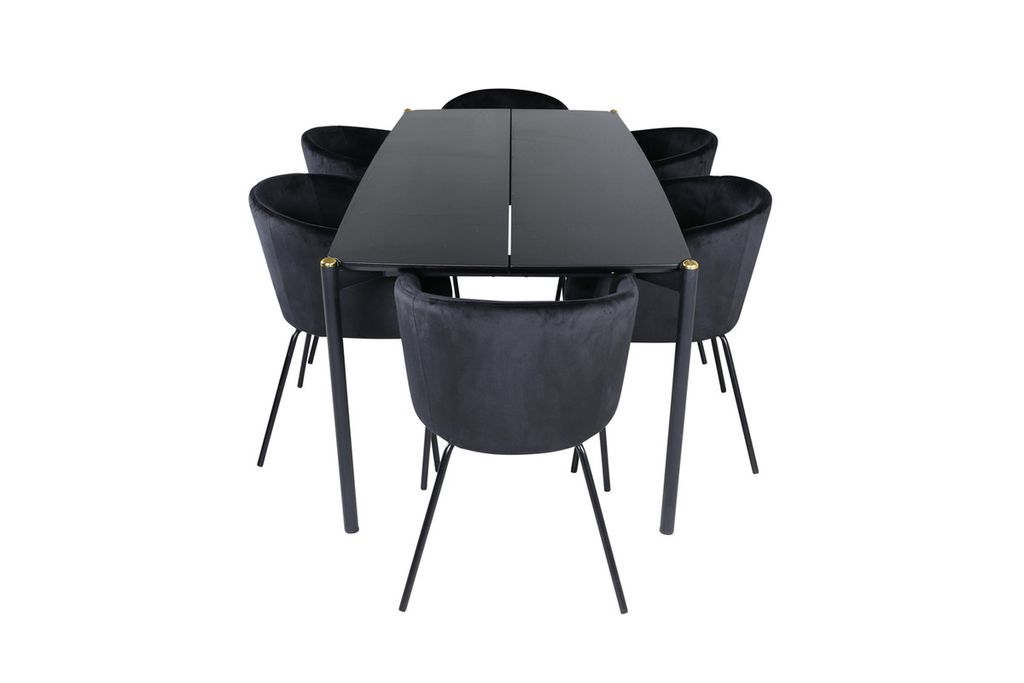 Venture Home Berit & Pelle 6 st Matstolar Svart + Rektangulärt Matbord 190 x 90 Svart