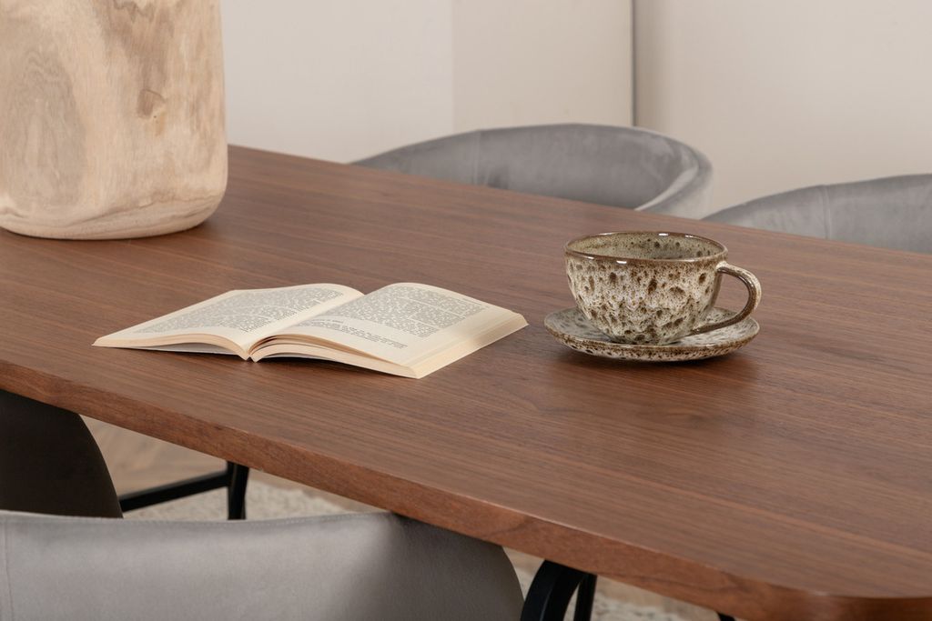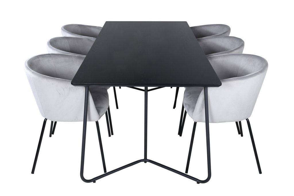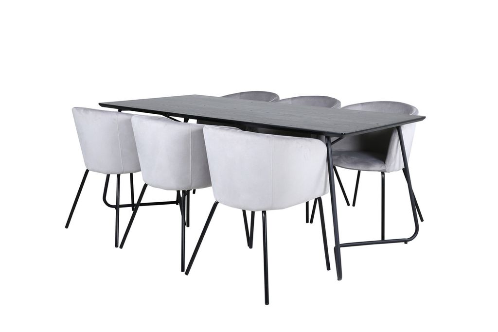 Venture Home Berit & Petra 6 st Matstolar Grå + Rektangulärt Matbord 190 x 90 Svart