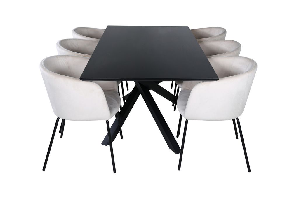 Venture Home Berit & Piazza 6 st Matstolar Beige + Rektangulärt Matbord 180 x 90 Svart
