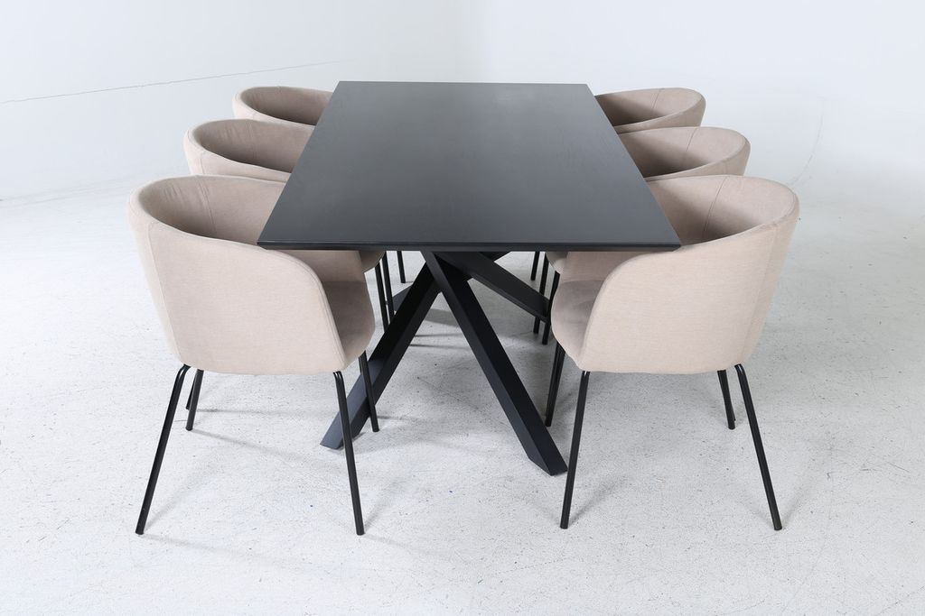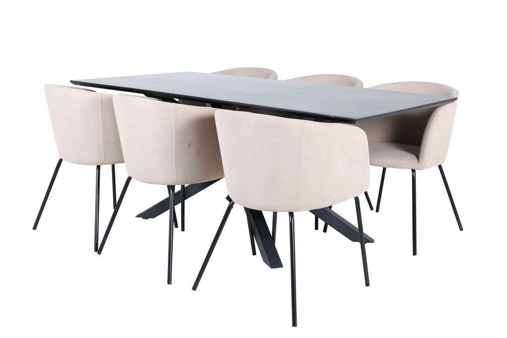Venture Home Berit & Piazza 6 st Matstolar Beige + Rektangulärt Matbord 180 x 90 Svart