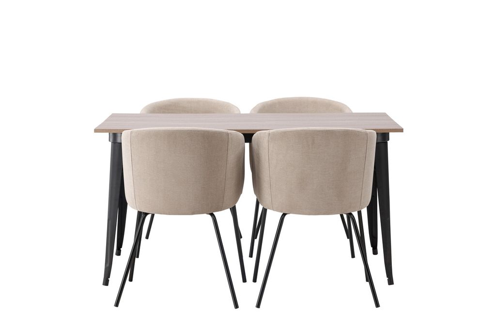Venture Home Berit & Tempe 4 st Matstolar Beige + Rektangulärt Matbord 140 x 80 Valnöt