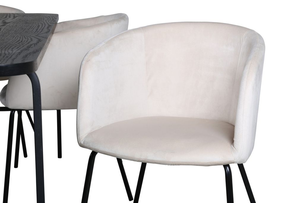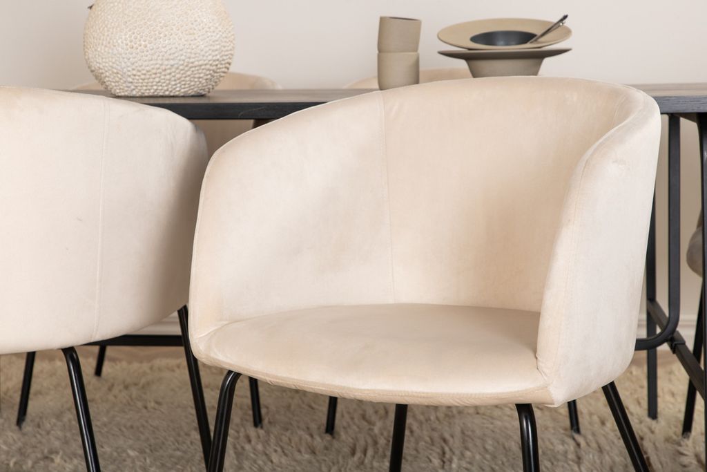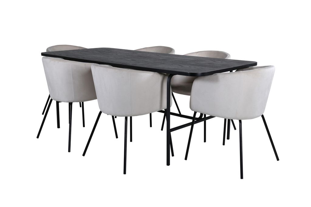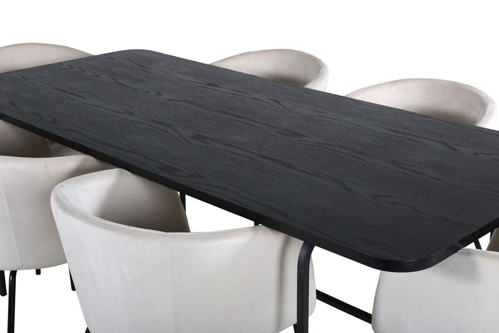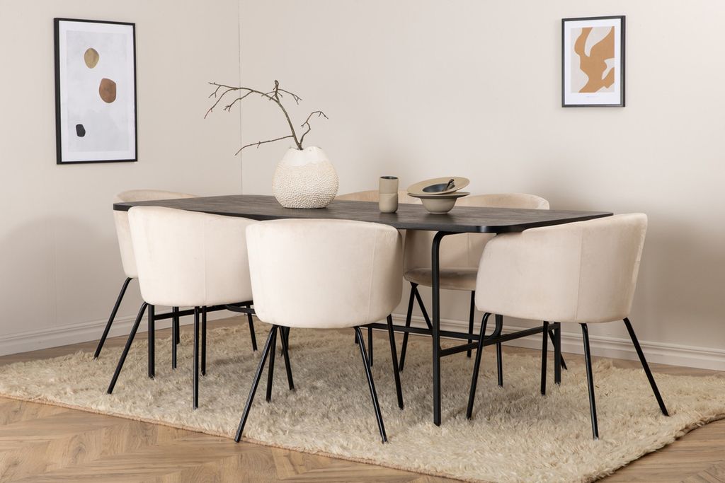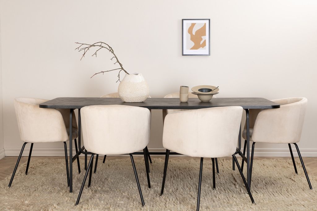Venture Home Berit & Uno 6 st Matstolar Beige + Rektangulärt Matbord 200 x 90 Svart