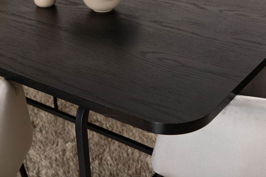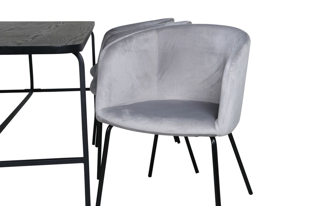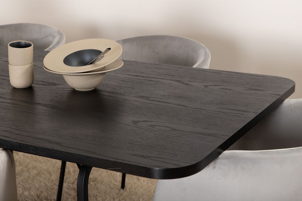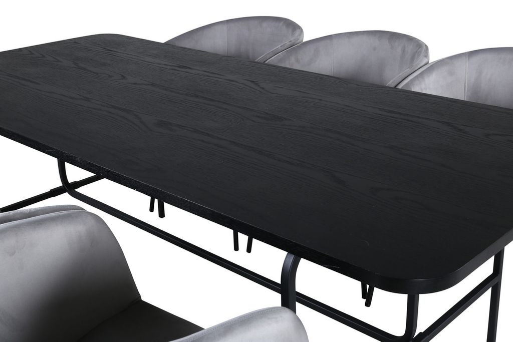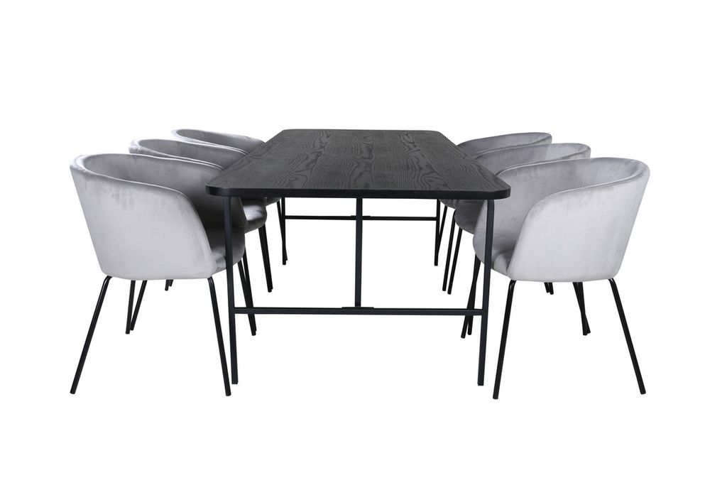 Venture Home Berit & Uno 6 st Matstolar Grå + Rektangulärt Matbord 200 x 90 Svart