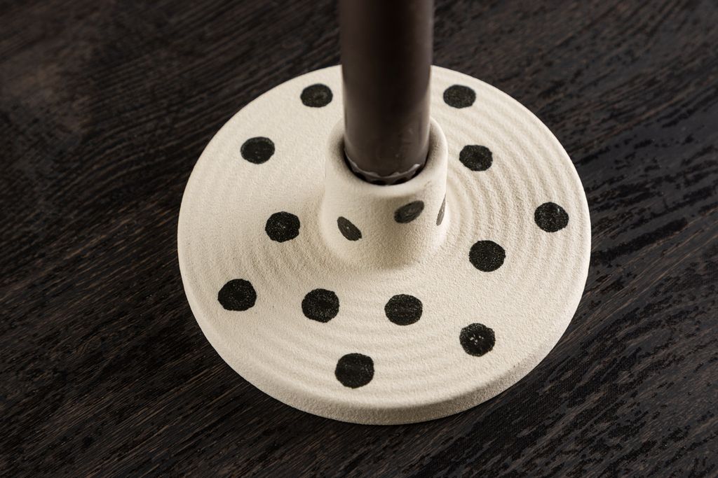 Möta Bette – den charmiga ljusstaken som förenar en tidlös design med lekfulla detaljer. Tillverkad i stengods, har Bette en elegant vit bas med karakteristiska svarta prickar, skapande en visuellt tilltalande kontrast.