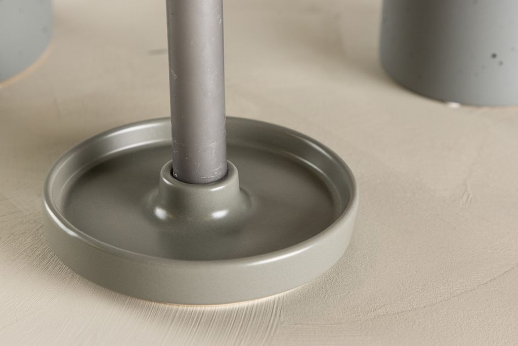 Möjliggör en atmosfär av enkel elegans med vår Bette ljusstake. Den trendiga och stilrena grå nyansen av stengods ger ett modernt uttryck till din inredning. Med en generös diameter på 13 cm erbjuder Bette tillräckligt med plats för att framhäva ett långt ljus centralt.