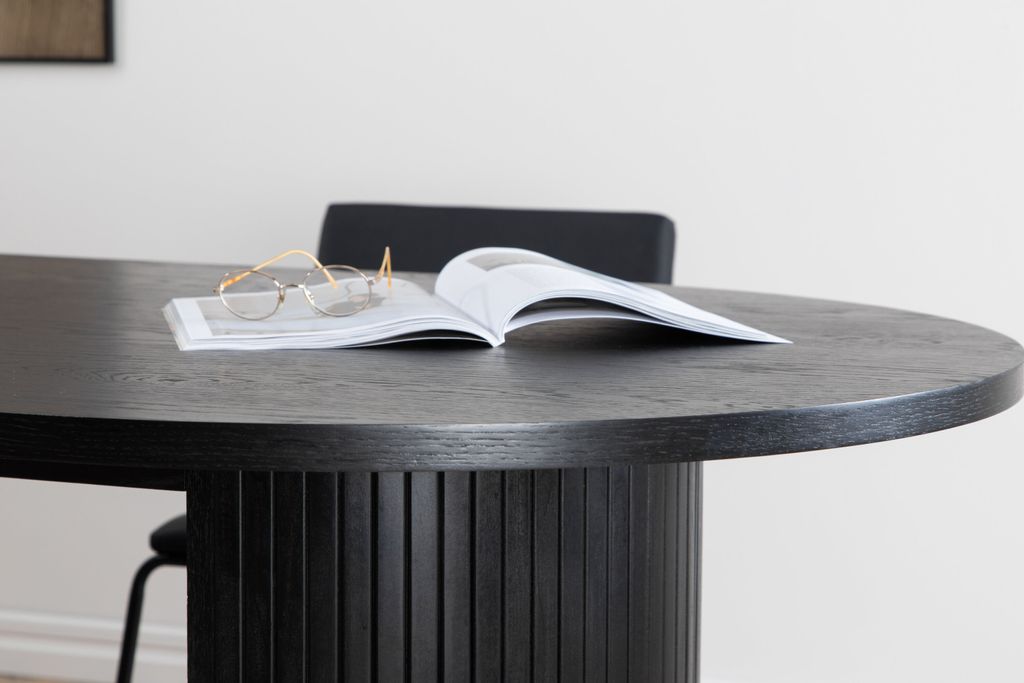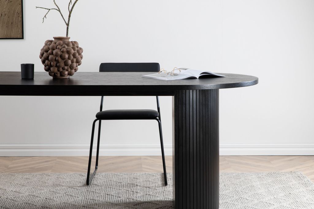 Venture Home Bianca Bord skapar ett stilsäkert blickfång i ditt hem. Detta ovala matbord är helt i svart och passar perfekt i moderna inredningar. Bordsskivan är tillverkad i robust MDF med en elegant finish, medan stommen är designad med en iögonfallande ribbad struktur som ger både stabilitet och stil.